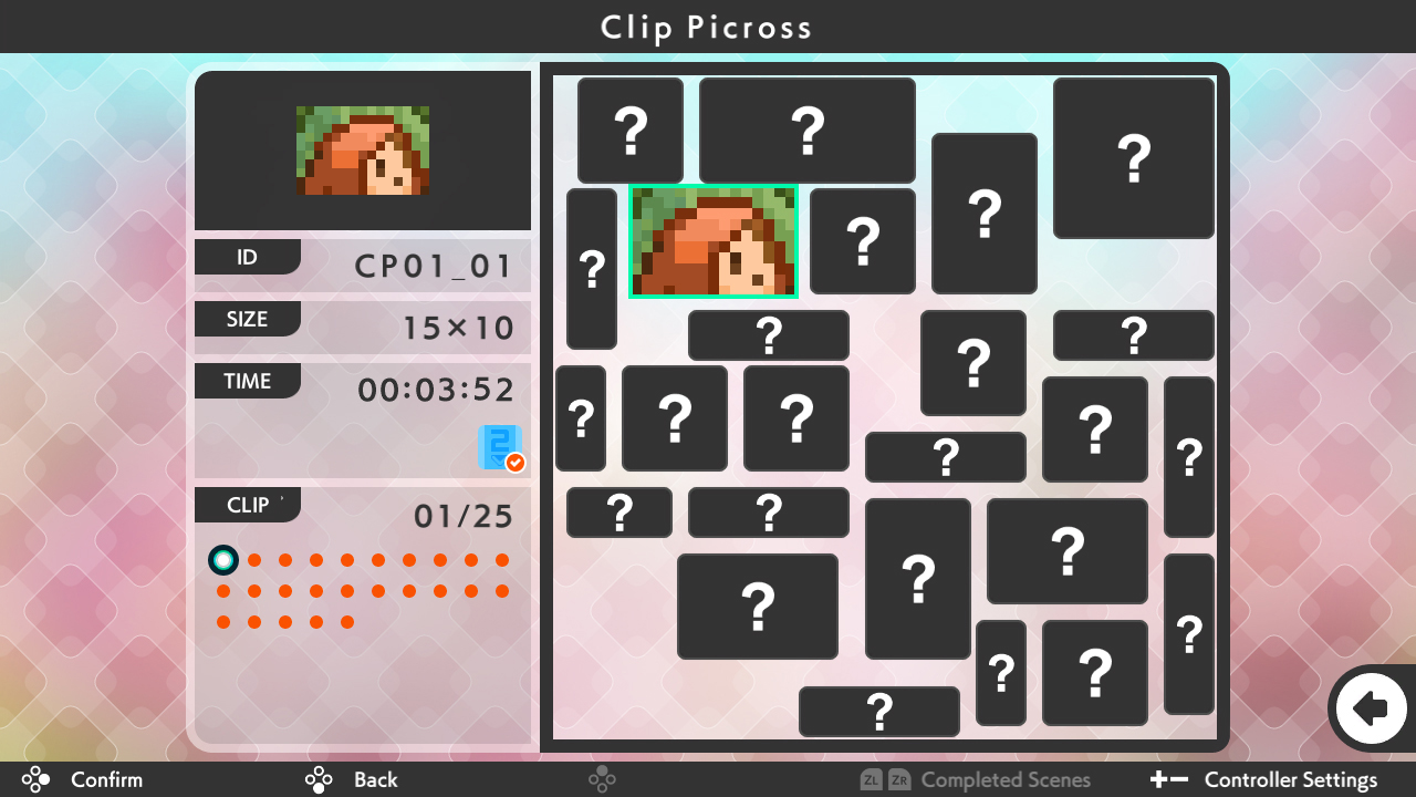 - Clip Picross où vous complétez des histoires, et le contenu bonus Extra avec de grands puzzles.