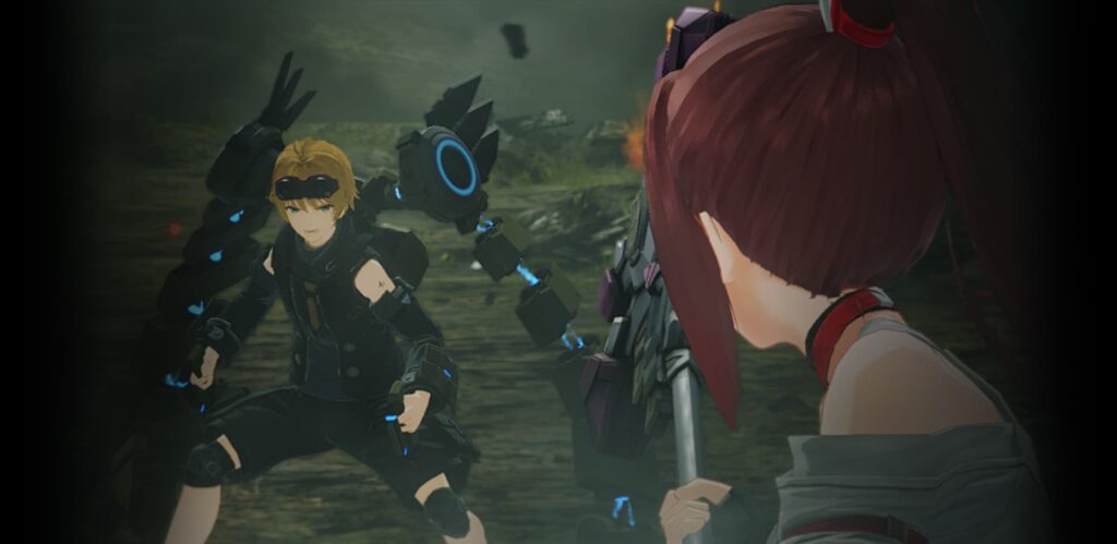 Nous poursuivons ensuite avec une scène de présentation du monde où la caméra suit rapidement un genre de rail qui finit par zoomer une partie de ce monde sur lequel évoluent nos deux nouveaux protagonistes : Matthew et A. Ces derniers sont poursuivis par une étrange machine et Matthew décide de riposter par les poings. La toile de fond de ce DLC est diluée sur les premières heures de jeu en multipliant toujours plus les questions pour les grands fans de Xenoblade. Nous suivons ainsi Matthew, un survivant de la Cité qui a été détruite par le consul N. Notre héros est accompagné par la mystérieuse A et parcourt le monde à la recherche d’autres survivants puis surtout de sa sœur Nael.