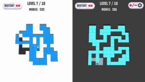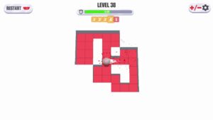 Terminons ce test par la partie technique. La charte graphique de base est très très très très épurée. Des blocs blancs pour nous stopper, de couleur flashy pour les endroits sur lesquels nous sommes déjà passés et une bille pour nous déplacer. C’est tout et rien ne viendra égayer nos écrans durant la petite heure nécessaire à nous dégoûter. Il est bien possible de débloquer des skins pour notre bille, mais même ceux-ci sont recyclés régulièrement, c’est le niveau zéro de l’implication.