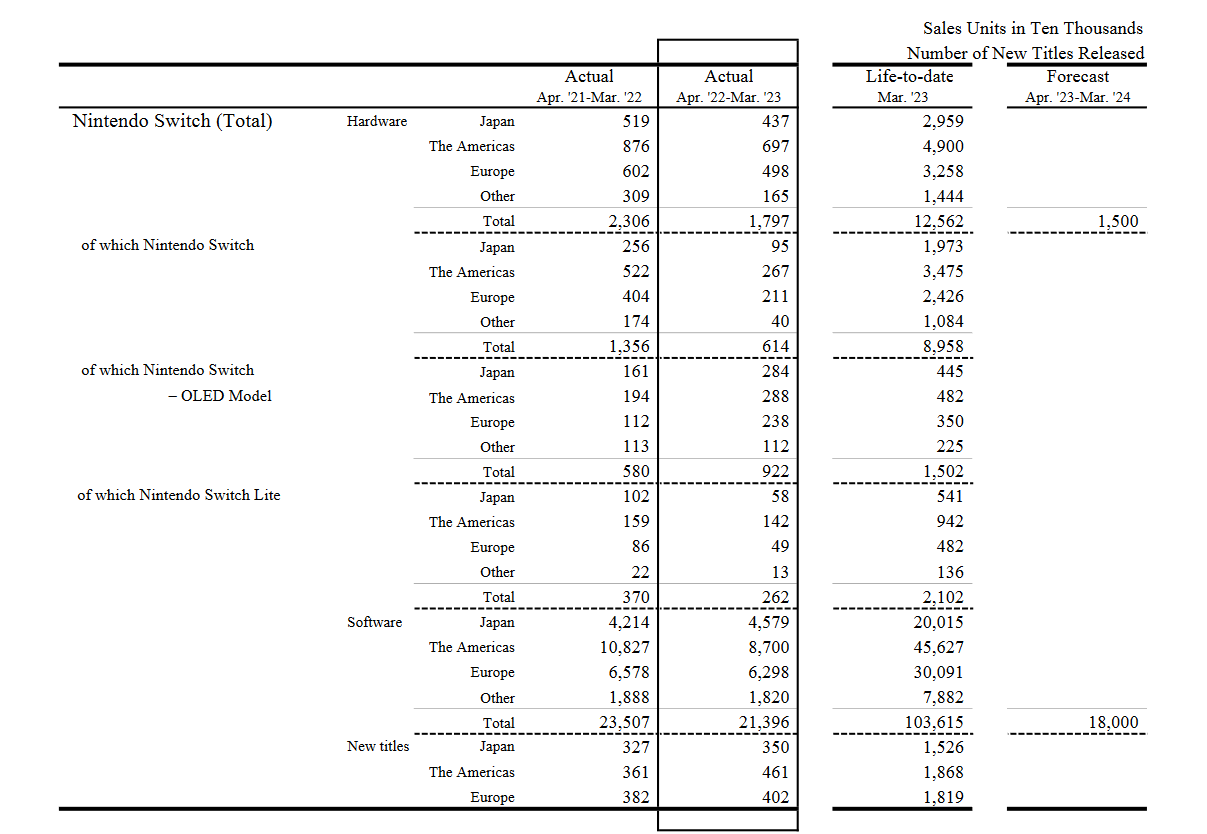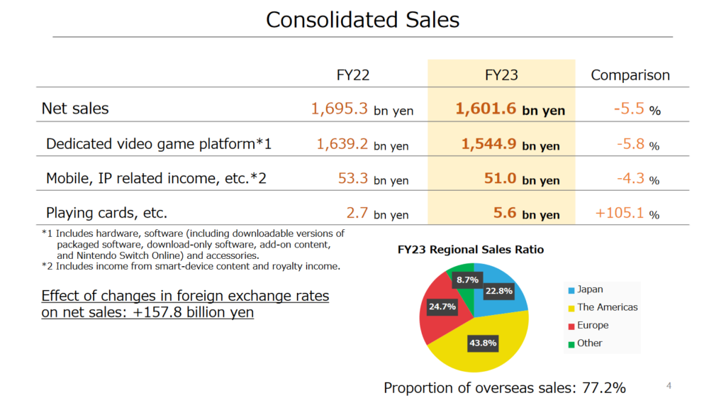 Nintendo a communiqué ses derniers résultats financiers pour l’exercice clos le 31 mars 2023 (du 1er avril 2022 au 31 mars 2023).