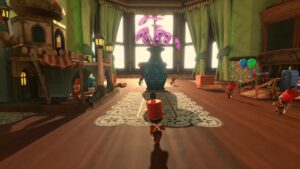 Durant nos péripéties, nous contrôlons le fantôme d’Albert qui va devoir amener de petits soldats de plomb de sa création du point de départ, représenté par une petite boite, jusqu’à une porte. Ces petits soldats ne font qu’aller tout droit et c’est donc à nous de placer sur leur trajet les différents éléments nécessaires à leur bonne progression. La première chose qu’il nous faut gérer concerne l’espace dans lequel se déroulent ces puzzles. En effet, nous évoluons dans un environnement en trois dimensions et nous pouvons nous déplacer librement dans celui-ci.