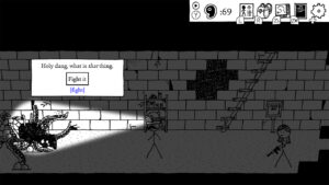 En plus de tous ces éléments de gameplay, Shadows Over Loathing est un jeu où l’humour est omniprésent. Il y aura toujours des répliques pour nous faire rire et des choix improbables à prendre. Les équipements aussi sont amusants : nous pouvons par exemple porter des chaussures qui ne nous apportent pas grand-chose en termes de statistiques, mais qui va permettre à notre personnage de se déplacer de façon étrange.