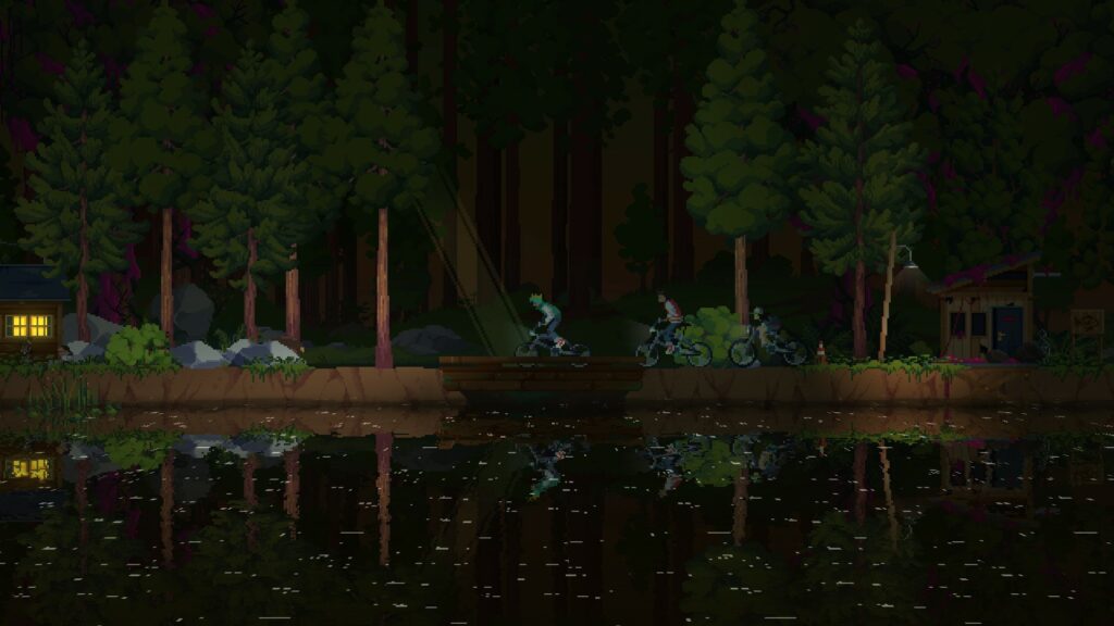 • Un été plein de frissons : La magie du pixel-art emblématique de Kingdom, dessiné à la main, est de retour avec une ambiance néon qui transpire les années 80. Vibrez au son de la bande-son synthwave originale d’Andreas Hald et remontez le temps jusqu’aux jours merveilleux des balades à vélo et des colonies de vacances, à l’époque où tout semblait possible.