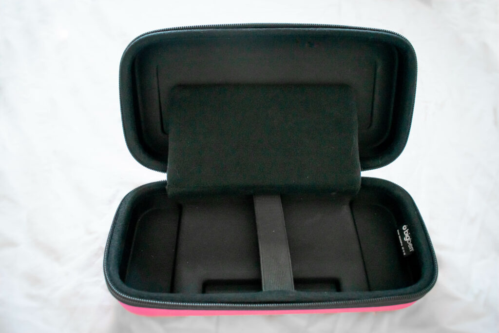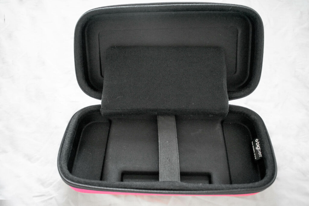 Cette pochette somme toute classique offre une résistance d’une très bonne qualité. Très solide, même après de nombreuses chutes, la pochette ne subit aucune déformation visible et le contenu reste solidement protégé. On y retrouve un emplacement pour votre console, ainsi qu’un support pour ranger son chargeur. On regrettera par contre l’absence d’emplacements pour vos cartouches de jeux.