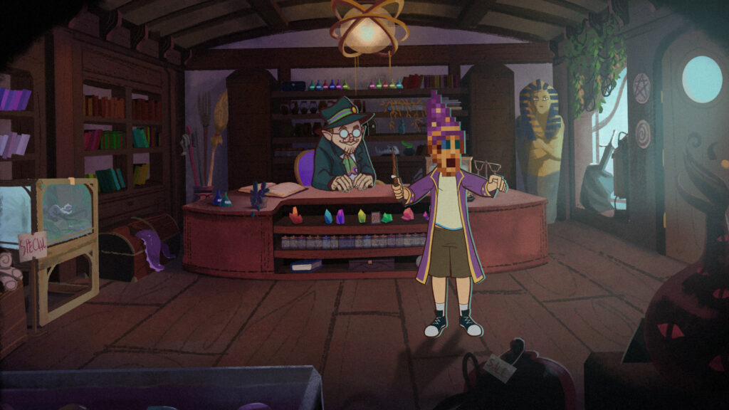 Ce projet audacieux et ambitieux est le fruit de la passion et du talent de Massimo Calamai, fondateur et directeur de Smallthing Studios, et de Fabrizio Rizzo, concepteur principal du jeu et concepteur narratif. Le duo s’est inspiré du classique emblématique des années 90 pour créer un nouveau point de départ qui célèbre le passé de la série, tout en adoptant les technologies d’aujourd’hui. Simon the Sorcerer Origins se déroule juste avant les événements du premier volet, créant un lien direct avec ces moments emblématiques, mais avec une perspective entièrement nouvelle et surprenante. Le style graphique du jeu, avec ses illustrations et animations entièrement dessinées à la main, est un parfait mélange d’expressions artistiques modernes et un témoignage visuel de l’esprit de renouveau défendu par Smallthing Studios. Ce tout nouveau Simon conserve les caractéristiques de la franchise qui se sont imposées au fil des décennies : la forte personnalité du jeune protagoniste, rebelle et sarcastique, continue d’occuper le devant de la scène, enrichie désormais de nuances plus émotionnelles, plus profondes et plus contemporaines. Cette approche s’étend aux modes de jeu, offrant un mélange de passé et de présent qui permet aux fans de longue date et aux nouveaux joueurs de choisir entre le gameplay point-and-click classique et une version plus actuelle, optimisée pour tous les supports, en prenant le contrôle de Simon.