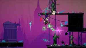 Chaque tableau ne dure que quelques minutes, mais nous demande de connaître les différents types d’attaques des monstres qui apparaissent pour nous mettre dans les meilleures conditions pour en venir à bout sans perdre le moindre point de vie. Car oui, rogue-lite oblige, la jauge de vie est un bien précieux qui est loin de se remplir facilement. Nous enchaînons ainsi les roulades et les sauts tout en essayant d’utiliser au mieux les capacités que nous avons récupérées jusque-là. Le tout nous offre un gameplay nerveux qui se renouvelle constamment et qui nous laisse progresser à notre rythme tout en nous permettant de petits moments de gloire quand un boss qui nous résistait finit par céder.