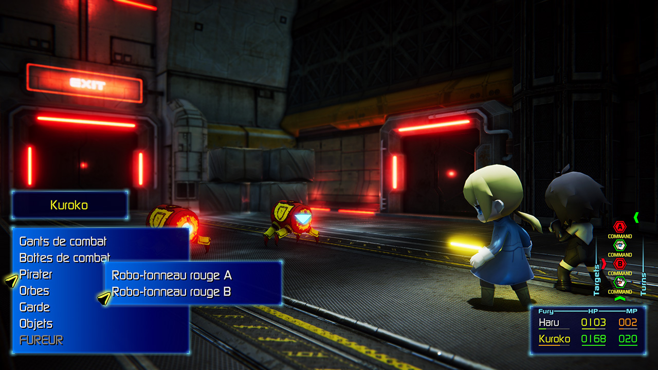 Au niveau du gameplay, nous avons une progression linéaire avec quelques petites quêtes très rapides et des mini-jeux gonflant juste légèrement la durée de vie. L’exploration se fait en contrôlant Haru ou Kuroko à travers Low City et ses alentours. Quelques puzzles, des quêtes annexes, des récompenses à acquérir pour enrichir un peu le système. Une ville souterraine très inspirée du début de FF VII, une ville dans laquelle traîne des créatures hostiles sans oublier quelques soldats agressifs de l’Empire. Les quelques combats se font au tour par tour avec des commandes à saisir. Pas de barre ATB ici mais un historique des tours visible en combat. Nous pouvons saisir d’attaquer ou d’utiliser une “Orbe” consommant des MP (autrement dit de la magie), sinon nous pouvons nous défendre ou utiliser des objets. À côté de notre vie, une jauge de fureur qui une fois pleine nous permet d’utiliser une attaque spéciale. Globalement, un système de jeu qui ne révolutionne rien mais qui reste solide.