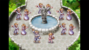 Les modèles des personnages n’ont pas changé totalement, en revanche les décors se sont améliorés avec l’ajout de la 3D et ils se mélangent parfaitement avec les modèles 2D de vos personnages. Les animations sont plus détaillées et l’ajout d’animations lorsqu’on se déplace sur la carte et même l’ajout d’animations pour des monstres secondaires. La musique est toujours incroyable et adaptée à toutes les situations, vous retrouverez énormément d’anciennes musiques de la série vue que vous revisitez certains lieux. D’ailleurs les graphismes ont le droit à une petite amélioration en rendant les graphismes moins pixelisés, mais ce n’est pas proposé pour Rhapsody II pour une raison inconnue.
