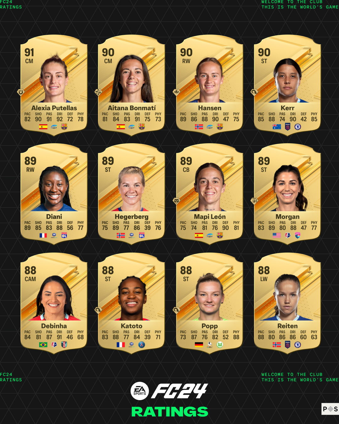 Tous les joueurs au sein du mode Ultimate Team sont notés en fonction de leur championnat et des athlètes qu’ils affrontent dans le monde réel. Les notes seront similaires dans les autres modes de jeux dans lesquels les hommes et les femmes évoluent de façon indépendante. Voici la liste des 24 joueuses et joueurs les mieux notés de EA SPORTS FC 24: