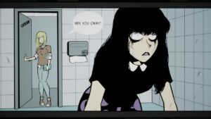Le personnage principal, Stéphanie, est cliché et peu empathique. Nous avons une personne lunatique aux motivations indéfinies qui se comporte mal avec tout ce qui l’entoure. Nous avons plus d’affection pour les personnages secondaires qui gravitent autour d’elle que pour elle. C’est dommage, car de nombreuses histoires arrivent à nous faire aimer des personnages aux valeurs plus que douteuses comme Orange Mécanique, Psychose, ou plus récemment House of Cards. Et si l’auteure voulait faire de son personnage un marginal empathique, il suffit de regarder quelques épisodes de Daria ou de BoJack Horseman…