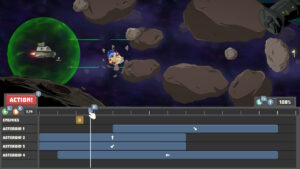 Le jeu entre alors dans une phase de puzzle où nous voyons sur notre timeline plusieurs évènements qui vont se dérouler pendant la scène. Il peut s’agir d’énormes vagues qui viendront déplacer les objets du décor, ou alors des voitures volantes qui se déplacent dans la ville dans lesquelles nous devrons nous cacher.