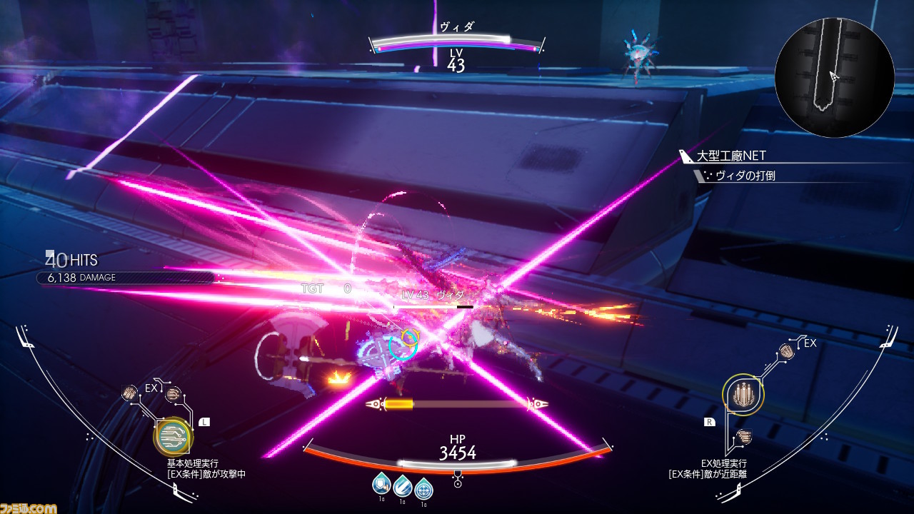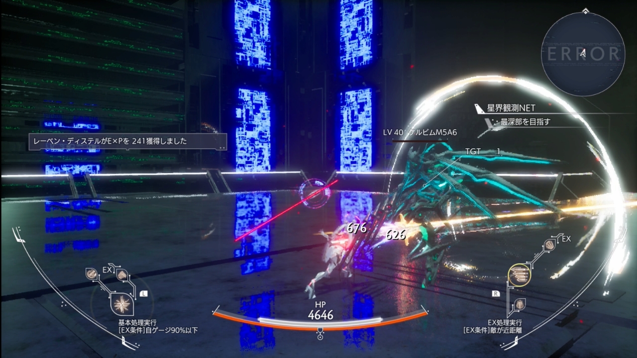 Une fois nos préparatifs achevés, nous pouvons lancer une mission clé ou optionnelle. Crymachina tente de jouer l’originalité lié à son lore en proposant de nombreuses missions optionnelles dont le déblocage n’est pas nécessairement très clair. Le jardin idyllique de Enoa est situé dans une dimension virtuelle. A partir de cette dimension, c’est en enregistrant des genres de coordonnées ou adresse IP en 10 caractères que nous pouvons accéder à de nouvelles missions. Les missions clés sont enregistrées par défaut, en revanche les optionnelles demanderont aux joueurs d’en taper les coordonnées pour s’y rendre. La plupart des coordonnées se trouvent à travers des archives et documents de missions. Cependant, tout n’est pas clairement indiqué et osons dire qu’il est probable qu’une soluce soit utile pour ceux qui cherchent le 100%. L’autre possibilité est de perdre son temps à taper les combinaisons de chiffres et espérer tomber sur les missions. Une originalité qui devient un enfer pour les complétistes.