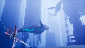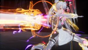 Les gâchettes permettent d’activer nos armes auxiliaires qui sont limitées par une jauge d’énergie. Il y a une jauge pour l’arme auxiliaire gauche et une autre pour la droite. Elle se remplit automatiquement avec le temps et une fois que vous videz une jauge, l’arme est temporairement en surchauffe. La gâchette secondaire ZR permet justement d’esquiver tandis que l’autre permet de saisir une arme à longue distance avec un viseur et de tirer sur des ennemis ou des mécanismes. Attention, il y a également une notion de munitions attribuée à cette arme à distance. Ajoutons également une mécanique de brise garde en entamant la jauge de bouclier ennemie, une mécanique de bullet time sur une esquive parfaite, la possibilité d’éveiller le pouvoir latent de nos personnages pour booster temporairement leurs capacités puis un finish lorsque la garde ennemie est brisée et que vous le faites retomber au sol durant un enchaînement. De plus, le gameplay est subtilement différent selon l’héroïne que nous contrôlons.