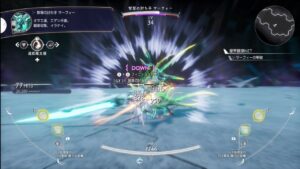 Notre mission sélectionnée, nous nous retrouvons sur un décor en 3D à la troisième personne. Sur cette partie, reprenons la comparaison avec Crystar. Dans celui-ci, nous évoluons à travers plusieurs étages de labyrinthe avec des salles remplies de monstres à abattre, des mini-boss puis en fin de chapitre un boss important. En tant qu’Action-RPG, les affrontements étaient en temps réel. Crystar proposaient un système basique dans le genre, légèrement mou dans ses enchaînements d’actions, répétitifs, faciles et traînant en longueur en nous égarant dans ses couloirs sans fin. A ce niveau, Crymachina améliore la formule et propose un Action-RPG avec beaucoup plus de peps ainsi qu’une progression bien plus expédiée. Donnant finalement ainsi l’impression que nous enchaînons beaucoup de discussions pour ne jouer que 5-10 minutes de mission.