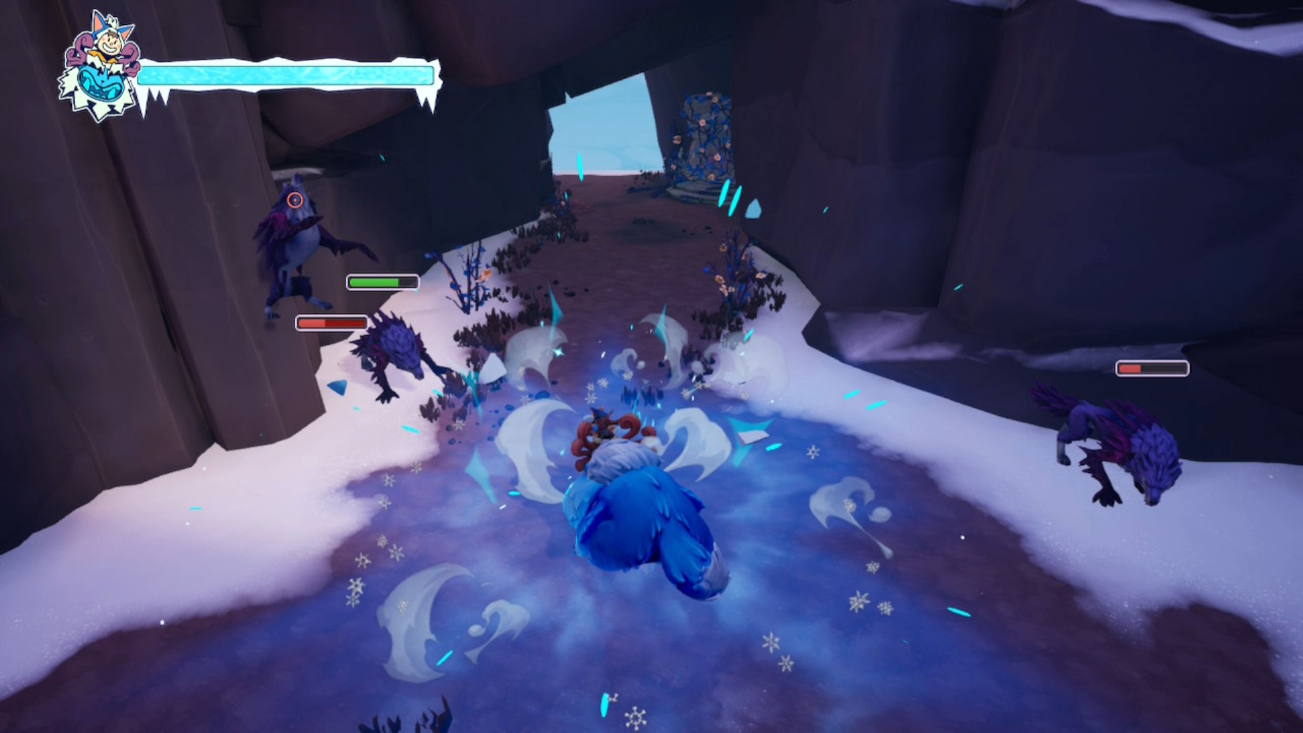 Bien que l’aventure soit principalement axée autour de la découverte et l’exploration, vous devrez à quelques occasions affronter des créatures qui ne vous veulent pas du bien. C’est au tour de Willump d’entrer en jeu et de montrer toute sa force. Willump dispose de deux coups, un coup rapide et un coup puissant qu’il peut enchaîner pour réaliser des combos. Vous pourrez également sauter pour déclencher des coups aériens ou lancer un coup puissant et attaquer en zone au sol. Willump a aussi la faculté d’esquiver, ce qui vous aidera à éviter les attaques adverses, généralement indiquées par une surbrillance rouge. Lorsqu’un ennemi a perdu tous ses points de vie, Willump peut exécuter une attaque finale qui déclenchera une petite mise en scène qui achèvera l’ennemi et qui permettra à Willump de récupérer quelques points de vie. Il existe plusieurs mises en scène différentes qui mettent bien en avant la complicité entre Nunu et Willump. Par ailleurs, après certains combats ou lorsqu’une énigme plus complexe est résolue, vous verrez Willump attendre que Nunu s’approche de lui pour qu’ils puissent faire un high-five ensemble. Et pour une dose de tendresse supplémentaire, lorsque vous êtes au contrôle de Nunu uniquement, vous approcher de Willump en appuyant sur A vous permettra de lui faire un gros câlin.