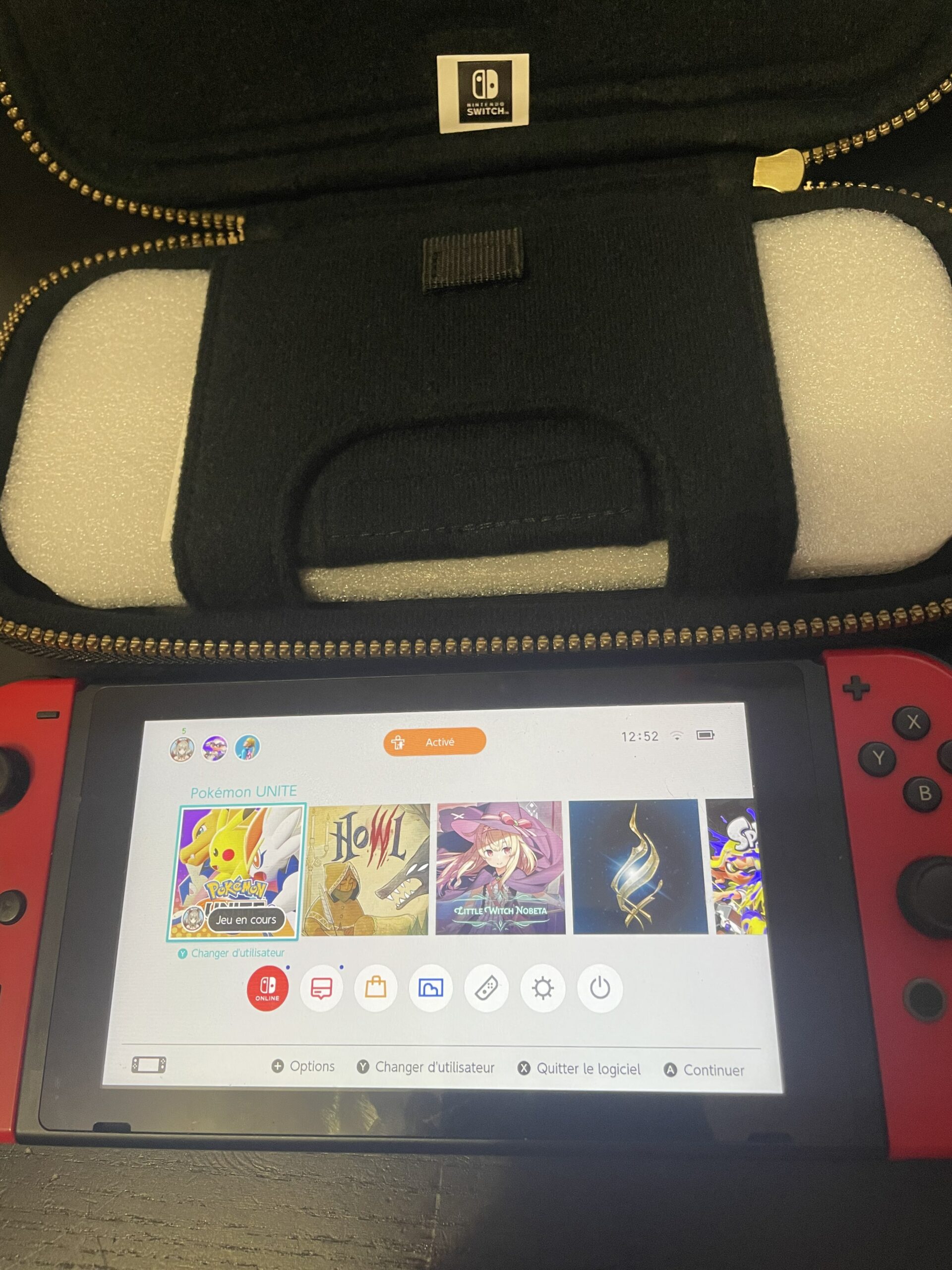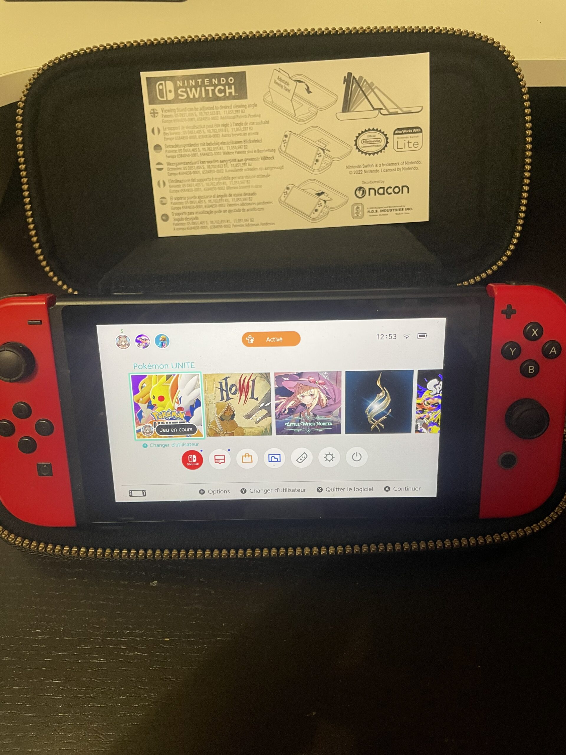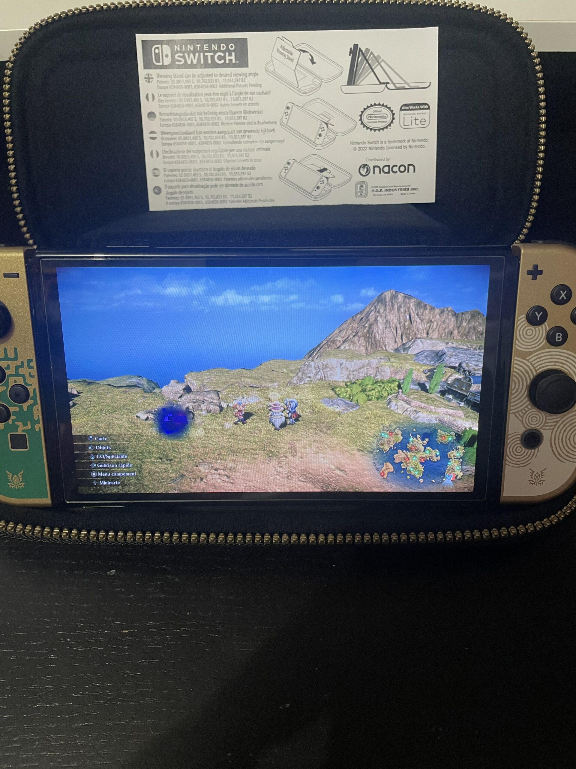 • L’étui prévoit un espace de rangement sous la console Switch adapté aux boîtes de rangement. Tout rentre parfaitement.