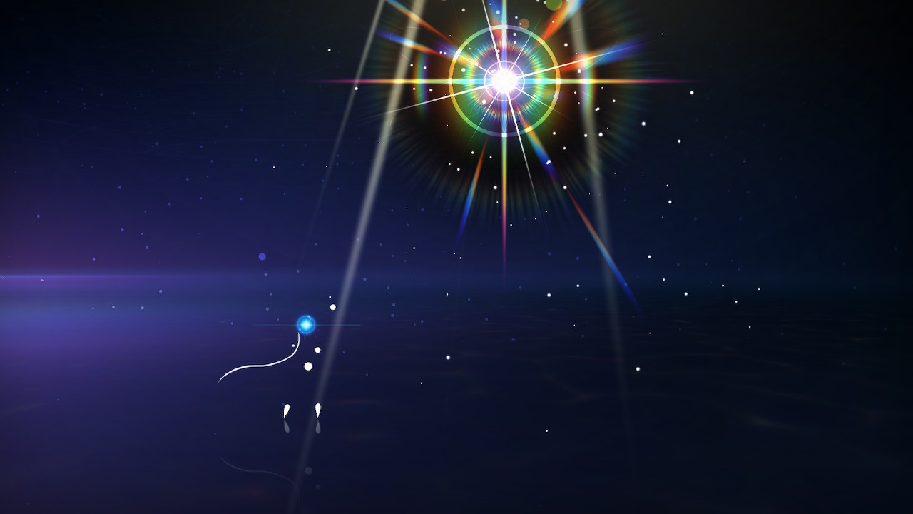 Bienvenu dans le [Sans monde] ; et après quelques minutes de cinématiques où nous observons des éclats de lumières bleue et rouge s’entrechoquer dans une sorte d’espace intersidéral, nous incarnons un être bleu aux formes féminines équipé seulement d’une épée et d’un bouclier qui se retrouve à échanger quelques coups contre un être rouge aux formes masculines, quant à lui armé de ses griffes et de ses compétences d’esquives / disparitions.