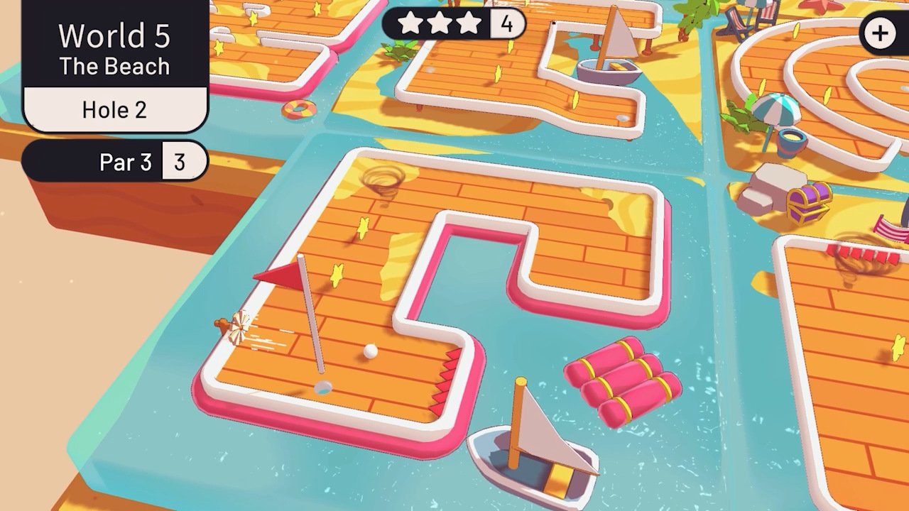 Le trou de fin de chaque parcours semble alimenté et dès que la balle s’en approche, le jeu considère que c’est la fin du niveau. C’est de la triche qui annihile tout plaisir de jeu, mais vu la précision de celui-ci, c’est inévitable. Les développeurs ont dû l’ajouter à la fin car le jeu était injouable de base. Le pire, c’est que souvent il ne s’enclenche pas, sans aucune raison. Et parfois il s’enclenche très loin du trou… Encore une partie du jeu loupée.