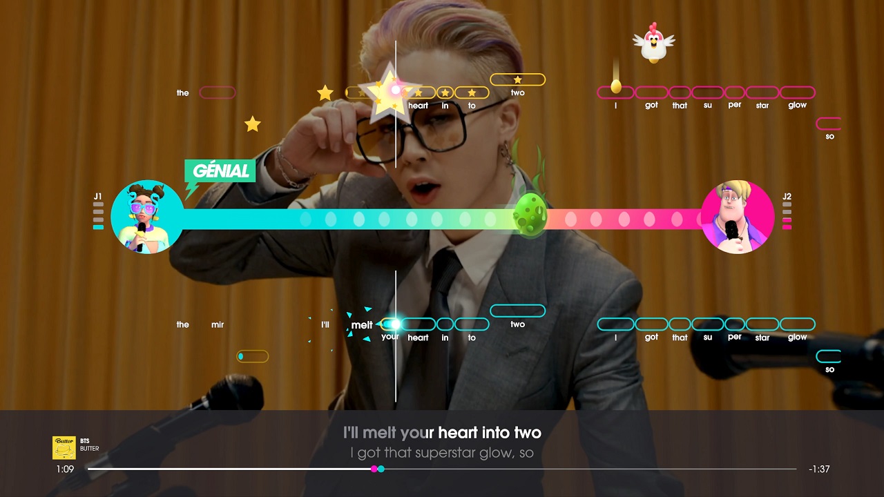 Jusqu’à 8 (par équipes) joueurs prennent un micro (ou un téléphone à nouveau) afin de rejoindre la partie. Plusieurs manches vont alors être réalisées avec pour chacune des règles bien spécifiques, et parfois franchement cocasses. S’il est assurément nécessaire de bien chanter, la connaissance des paroles peut être un sacré avantage (sauf triche du la la la toujours)… tandis que ces dernières se brouillent notamment. Une bombe pourrait bien être sur le point d’exploser à moins que vous ne parveniez à retarder son explosion par vos compétences vocales… ? Et que dire de ces poulets (!) qui s’amusent sur les bâtonnets de justesse tandis qu’il est nécessaire de chanter correctement pour repousser un œuf vers son adversaire… ! Oui, tout cela doit vous paraître bien abstrait sur le papier… ! Et pourtant !
