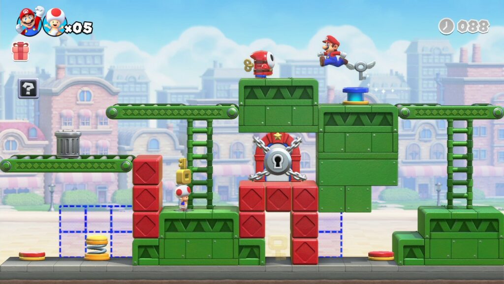 Et pour les joueurs qui souhaitent jouer avec un ami ou un membre de leur famille, Mario vs. Donkey Kong sur Nintendo Switch propose un mode 2 joueurs. Vous pouvez partager un Joy-Con avec un autre joueur (qui incarne Toad) et profiter d’une version spéciale des stages avec deux clés au lieu d’une, ce qui vous oblige à travailler ensemble pour ouvrir les portes.