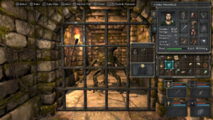 Une fois tous ces choix effectués, nous nous lançons enfin dans la partie. Nous serons donc en mode vue à la première personne et notre groupe de personnages se déplacera case par case. Ce déplacement peut s’avérer lent, mais au final cela nous permet de mieux visualiser notre environnement et tous les secrets qui s’y cachent. Un levier, un objet, une dalle piégée, une brique à activer, autant de choses qui font que l’on doit se montrer très attentif à ce qui nous entoure. D’ailleurs, les lieux sont sombres et l’équipement d’une torche ne sera pas un luxe. Si la visite des lieux est déjà bien immersive, nous aurons encore d’autres éléments à côté renforçant cette immersion. Ainsi, nous devrons gérer notre faim, notre encombrement et parfois même, nous devrons dormir. Chaque petit détail est important, car notre survie en dépend.
