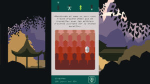 Tandis que les cartes se suivent les unes après les autres, le temps passe. Les jours sont visibles en bas de l’écran et deviennent progressivement un score à battre afin d’aller toujours plus loin dans la chronologie. De multiples contrées sont à découvrir, votre peuple n’est guère totalement immobile et replié sur lui-même ! Par ailleurs, de nombreuses quêtes plus audacieuses se débloquent progressivement, notamment après une petite discussion avec des personnages plus prestigieux. Le joueur dispose alors d’une quantité donnée de jours (donc de cartes) afin d’atteindre l’objectif énoncé. Par exemple : vous disposez de 360 jours maximum pour trouver un camp. Le temps passe vite vous savez…