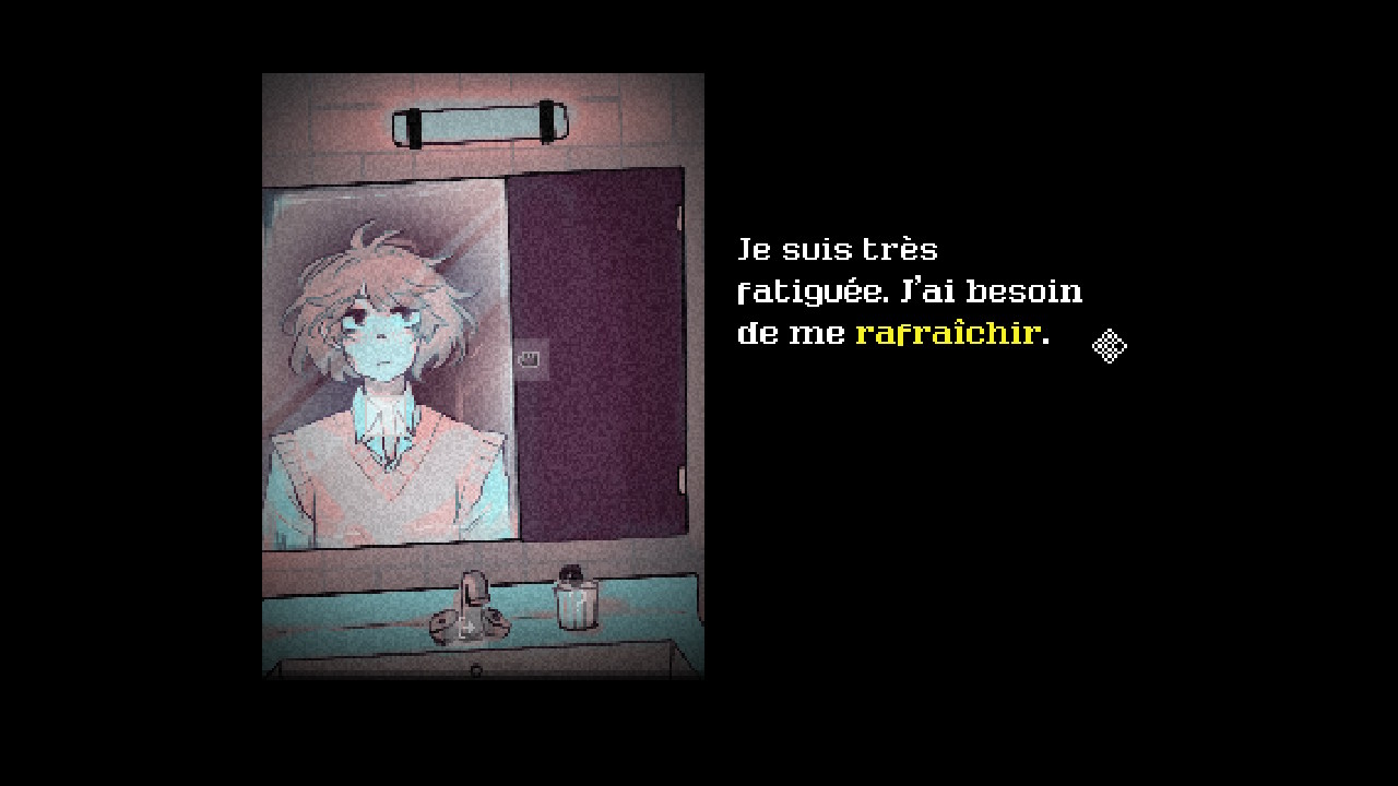 Les graphismes sont très bien réalisés. Ils sont dessinés à main, et cela donne du charme au jeu (malgré son histoire beaucoup moins charmante !). L’histoire du jeu est courte, mais intense. Elle est divisée en 5 petits chapitres, avec un point de contrôle (sauvegarde) entre chacun d’entre eux. Au fur et à mesure de votre progression, vos doutes et angoisses se manifesteront et prendront le dessus sur vous… et votre environnement. Vous ferez heureusement la rencontre d’un charmant garçon qui pourra (peut-être ?) vous aider à y voir plus clair.
