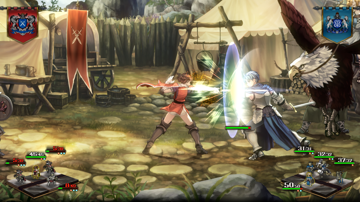 Il est ainsi probable que nous redéfinissions les déplacements de nos unités pour envoyer l’une de nos unités au contact d’une unité ennemie s’écartant de la route que nous avions anticipée. Ou simplement car des renforts ennemis apparaissent sur des emplacements que nous n’avions pas anticipés. Lorsque la route de 2 unités opposées se croisent, un combat se lance. Avant de confirmer le combat, nous avons une prévisualisation des dégâts que prendront ou non les 2 unités. Cette prévisualisation étant totalement fiable, il devient possible de skip les animations de combat pour s’en tenir au résultat. Avant un combat, il est également possible de changer la formation du groupe, notamment des unités situées au front ou à l’arrière, puis d’utiliser des objets pour se booster ou simplement se soigner. Soulignons pour les plus fébriles que le fameux permadeath de la série Fire Emblem n’existe pas ici et que nous pouvons ainsi agir sans cette pression.