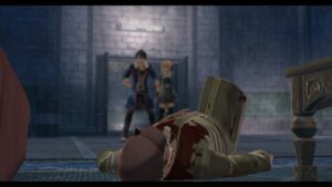 Il va sans dire que ce passé, ce présent et les évènements que nous vivons avec Van et ses alliés sont directement liés à ce qui se profile dans le futur de la série Trails ainsi que l’avenir du continent de Zemuria. Intéressons nous justement un peu plus à ces évènements présents et à notre nouveau groupe de personnages. Nous débutons l’histoire par une scène de mystérieuse transaction dans les égouts d’Edith, la capitale de Calvard. Ce qui semble être un groupe de jeunes délinquants en possession d’une mallette se permet de demander une somme d’argent initialement non convenue à un mystérieux groupe d’individus aux allures de mafieux en costume noir. Ceux-ci étant d’ailleurs armés, les deux factions en viennent aux mains et la transaction tourne au vinaigre. C’est alors que les autorités débarquent, obligeant les deux factions à cesser leur querelle pour fuir.