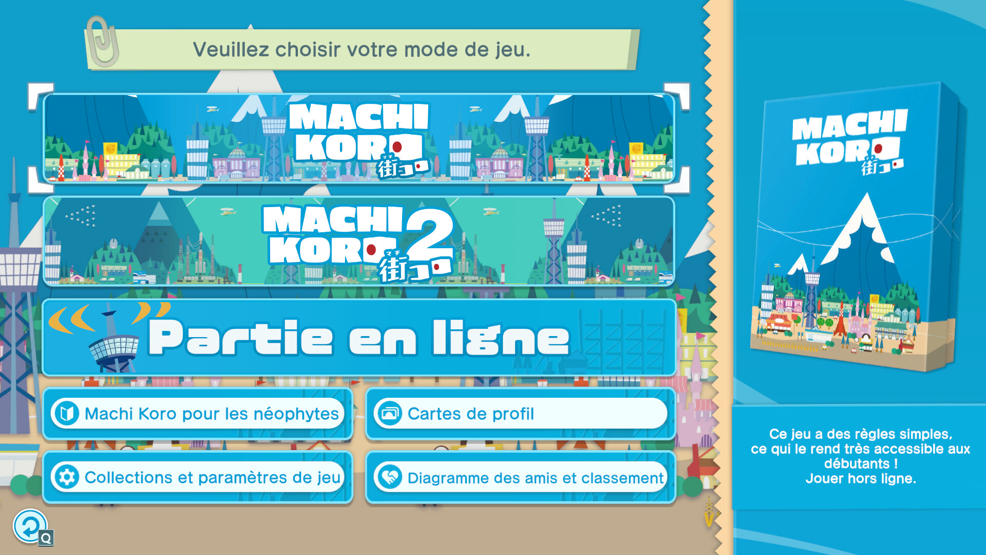 Ce jeu de société compétitif permet à quatre joueurs de s’affronter localement ou en ligne, s’appuyant sur le célèbre jeu de plateau éponyme qui a déjà conquis plus d’un million de joueurs à travers le monde (le city-builder Minivilles), ainsi que sa suite, Machi Koro 2.