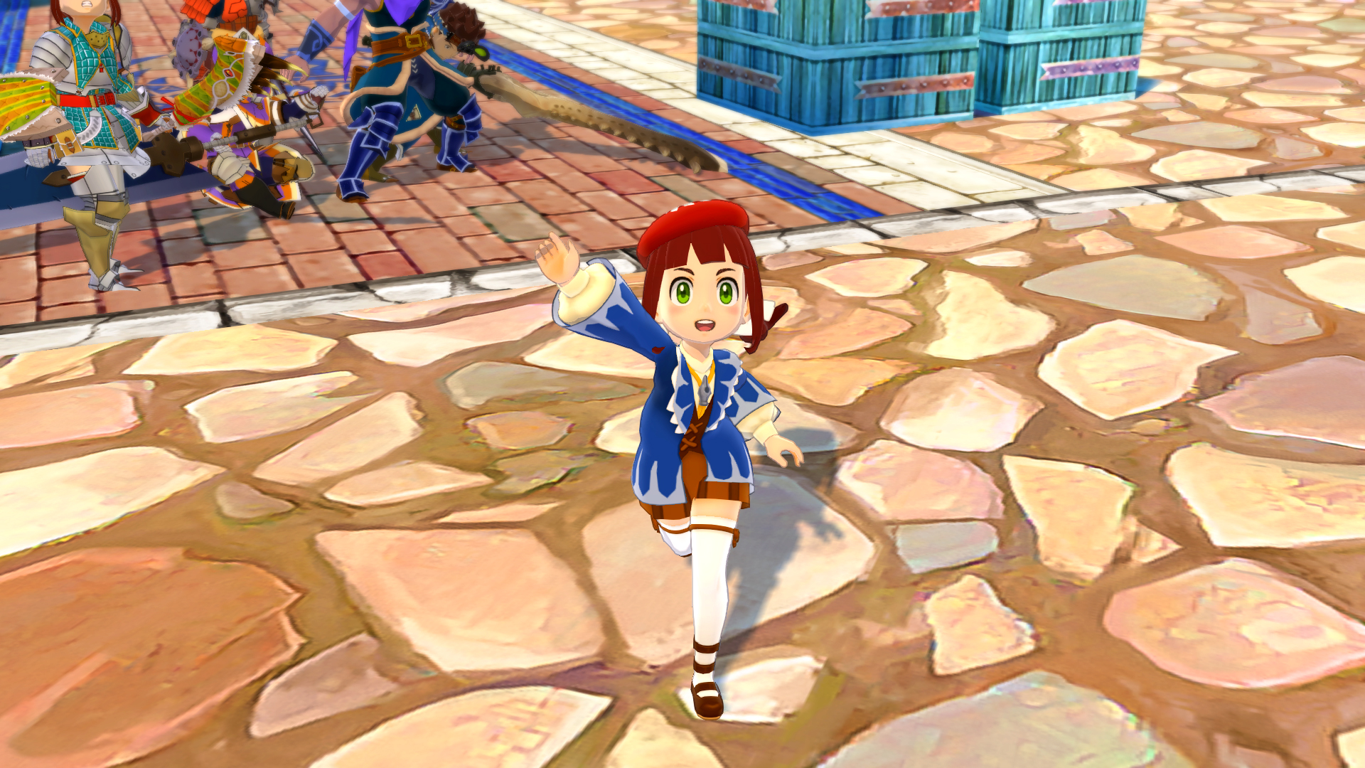 Les dialogues, revenons quelques instants dessus. Les voix sont en anglais ou en japonais. La traduction française est disponible. Les graphismes sont enfantins, très colorés, jolis et adorables. Nous avons pris plaisir à parcourir le village, à découvrir les premiers monstres… néanmoins, une fois à l’extérieur, le vide se fait davantage sentir avec des zones assez pauvres, dépourvues du moindre détail. Nous avançons en chevauchant notre monstie : une balade plutôt rapide mais avec une inertie discutable, nous avons un peu l’impression de glisser ! Par ailleurs, certains bugs d’affichage sont à souligner : nous fusionnons avec les rochers, nous rentrons en collision avec des monstres sans déclencher le combat… bref, de multiples imprécisions sont à déplorer.