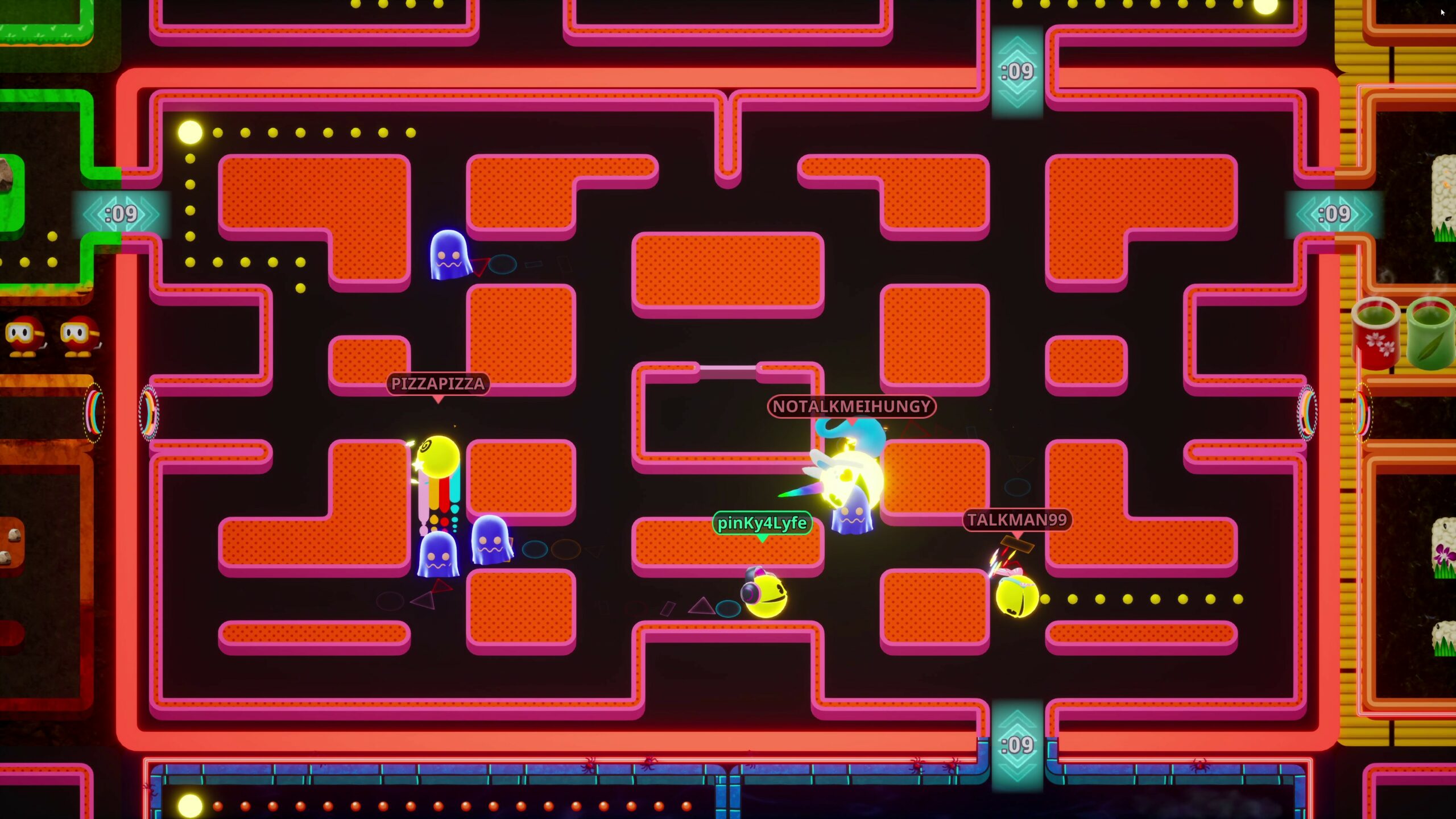 - On peut aller manger des pac-gommes dans le labyrinthe des autres