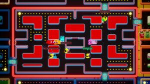Arrive donc mai 2024 et PAC-MAN Mega Tunnel Battle: Chomp Champs ! Un battle royale Pac-Man, mais cette fois disponible sur tous les supports et permettant aux joueurs du monde entier, qu’ils soient sur PC ou une autre console, de s’affronter dans des joutes infernales ou chaque pac-gomme compte !…Euh enfin… pas tant que ça…