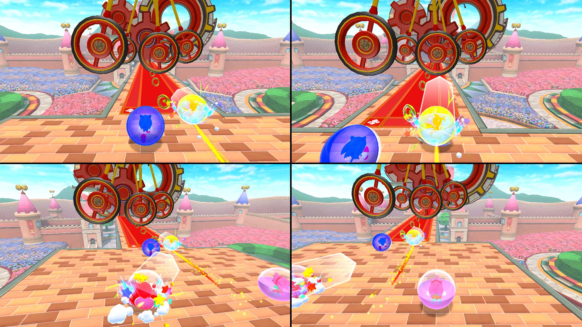 Préparez-vous à courir, à faire des roulades et des accélérations en rotation : Sonic, Tails, Knuckles et Amy rejoignent AiAi et ses amis dans leur aventure épique ! Les quatre personnages seront jouables dans les modes Aventure et Bataille, chacun disposant de ses propres caractéristiques pour venir à bout des niveaux. De plus, et seulement pour ces quatre personnages, les bananes à ramasser en jeu se transformeront en anneaux dorés pour rendre hommage à la célèbre franchise.