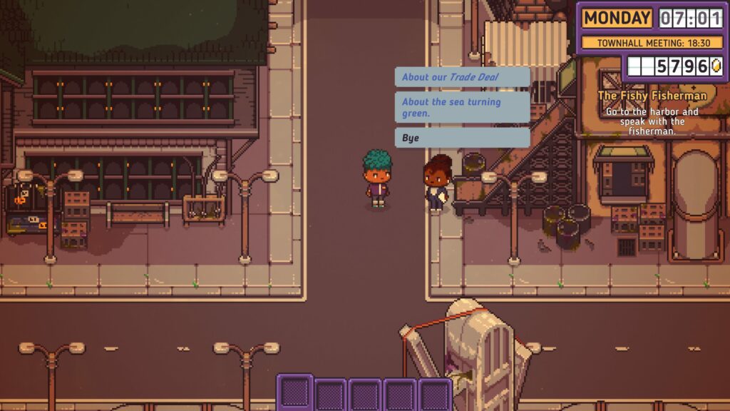 Les Blomkestiens n’apprécient guère les nouveaux arrivants. Gagnez la confiance des fabricants, passez des accords commerciaux et vendez des spécialités locales pour générer plus de revenus pour Discounty ! - Jonglez avec les responsabilités d’un commerçant