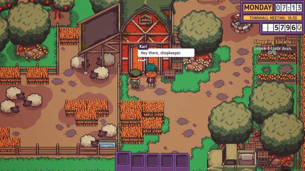 Créez une boutique attrayante et efficace en réorganisant vos étagères et vos produits. Attirez le chaland dans vos rayons et ajoutez des décorations pour encourager les achats ! - Passez des accords commerciaux avec les habitants
