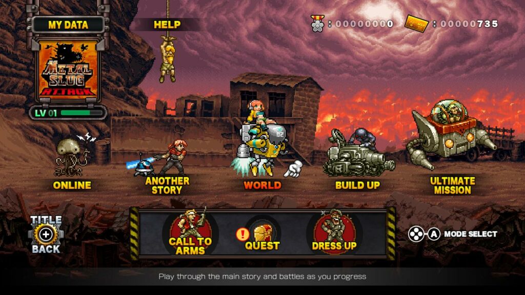 - METAL SLUG ATTACK RELOADED : METAL SLUG et son style pixel en 2D caractéristique font leur retour sous la forme d’un tower defence facile à prendre en main. Formez l’équipe la plus puissante possible et détruisez les bases ennemies en élaborant toutes sortes de stratégies avec des centaines d’unités. Le jeu propose aussi un mode ANOTHER STORY (une collection unique d’épisodes que les fans ne voudront pas manquer) ainsi qu’un mode GALLERY. Préparez-vous à affronter des rivaux du monde entier*1 et à viser le sommet dans METAL SLUG ATTACK RELOADED, qui fera son arrivée sur Nintendo Switch dans la journée.