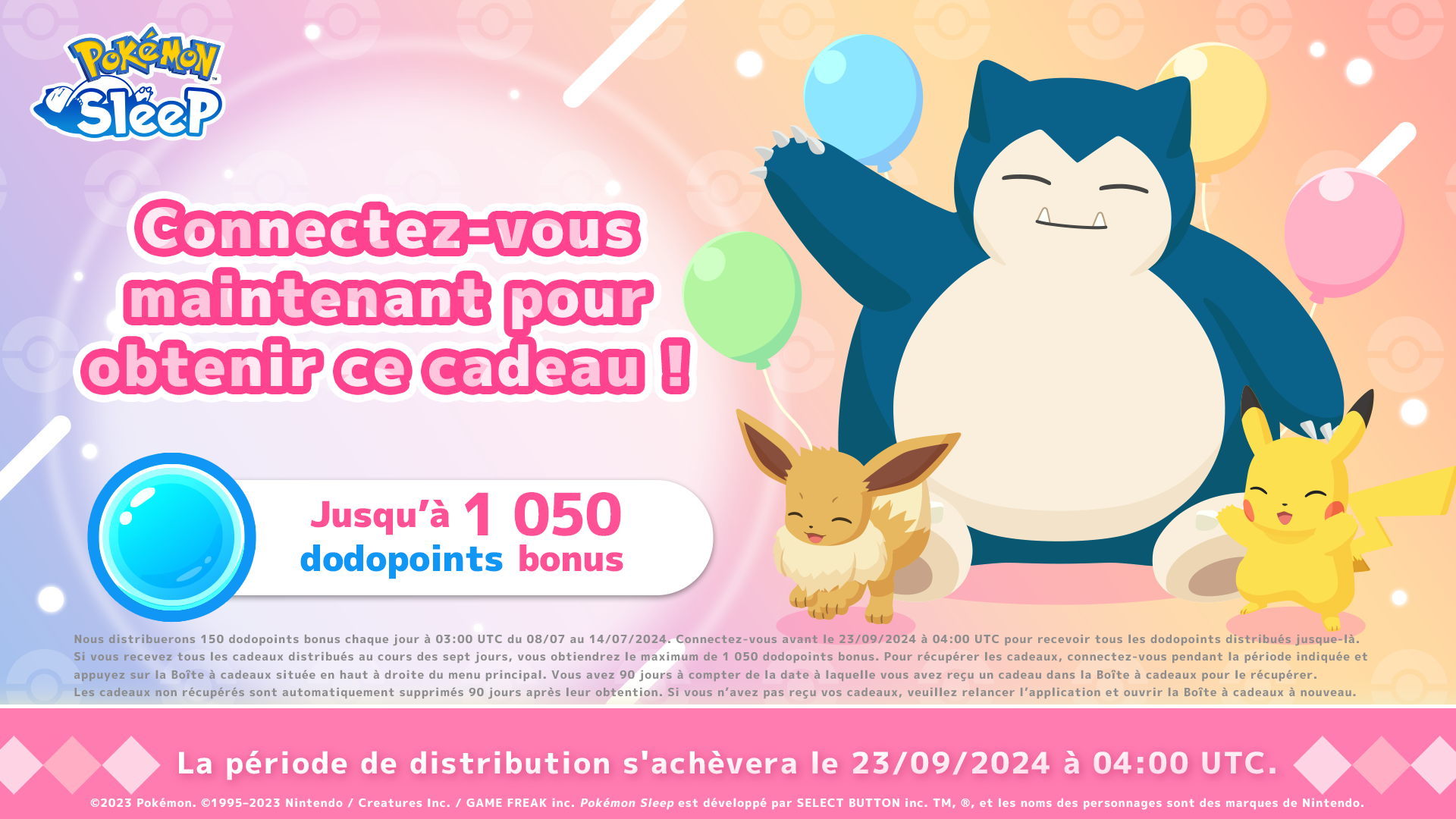 - Vous pouvez récupérer jusqu’à 1 050 dodopoints bonus en vous connectant au jeu avant le lundi 23 septembre à 04:00 UTC. Vous pouvez obtenir 150 dodopoints bonus quotidiennement à 03:00 UTC entre le lundi 8 juillet 2024 et le dimanche 14 juillet 2024.