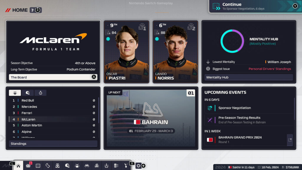 Loin du vrombissement des moteurs au siège de l’équipe, les joueurs traceront leur route vers la gloire en contrôlant les détails de chaque décision. Qu’il s’agisse d’embaucher le personnel qui travaille sans relâche pour développer une voiture gagnante en course et d’identifier de nouveaux ensembles d’améliorations pour faire progresser leur équipe, de négocier avec les sponsors et d’équilibrer leurs finances, chaque décision a son importance. F1® Manager 2024 introduit des considérations de gestion plus approfondies avec le nouveau système de mentalité, qui met en avant la personnalité de chaque pilote et membre du personnel. Signer une équipe de stars peut aider à faire avancer son équipe, mais favoriser un pilote plutôt qu’un autre peut le rendre malheureux et susceptible d’être débauché par une équipe rivale. Tandis qu’à long terme, les fans peuvent façonner leur propre avenir en recrutant les talents les plus chauds en tant que pilotes affiliés qui continueront à perfectionner leur technique de course en F2™ et F3™, avant de peser le moment de les présenter à leur première session de F1.