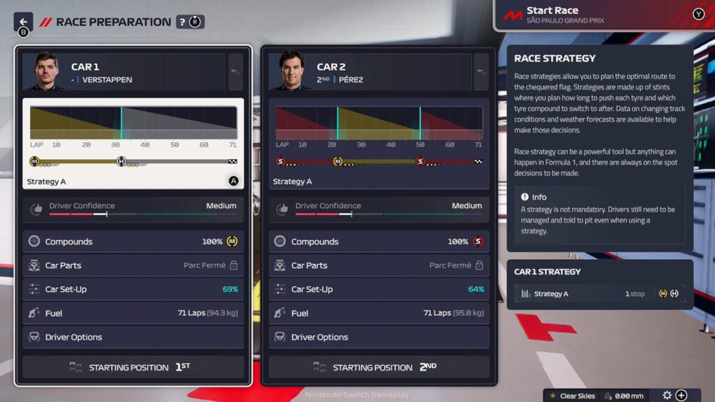 Pour la toute première fois, les joueurs peuvent choisir de prendre leurs décisions en déplacement sur Nintendo Switch™, car F1® Manager 2024 rapproche plus que jamais les fans de Formule 1® du rôle de directeur d’équipe. En prenant la tête de l’un des dix constructeurs officiels de F1® ou, nouveauté pour 2024, de leur propre équipe créée, les fans construiront leur héritage à la fois sur et en dehors de la piste alors qu’ils s’efforceront d’atteindre le succès sur plusieurs saisons. Les joueurs qui choisissent de créer leur propre constructeur peuvent prendre le contrôle total des conditions de départ de leur équipe pour définir leur propre défi, avant de libérer leur créativité dans de vastes outils de création de logos et de livrées pour donner vie à leur vision personnelle de la course. F1® Manager 2024 offre une parité complète des fonctionnalités sur Nintendo Switch™, offrant une toute nouvelle façon d’expérimenter chaque détail du jeu de gestion de la quintessence de la F1®.