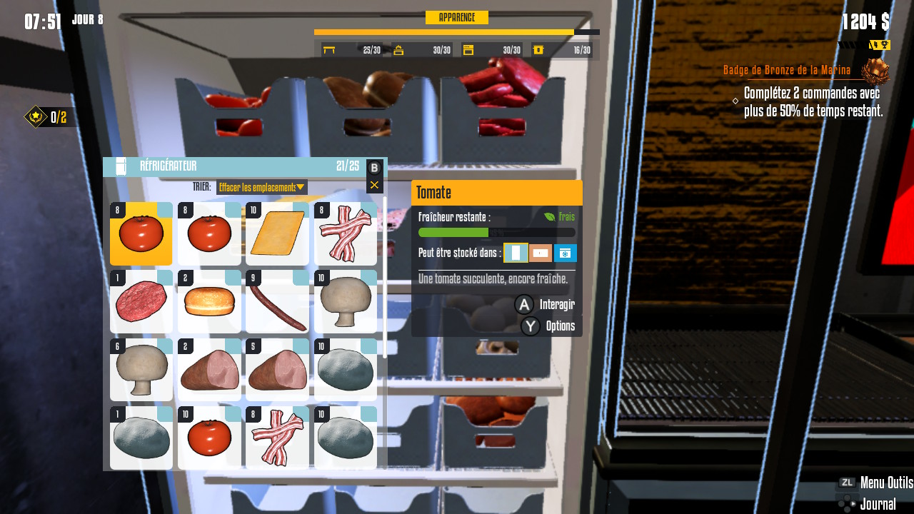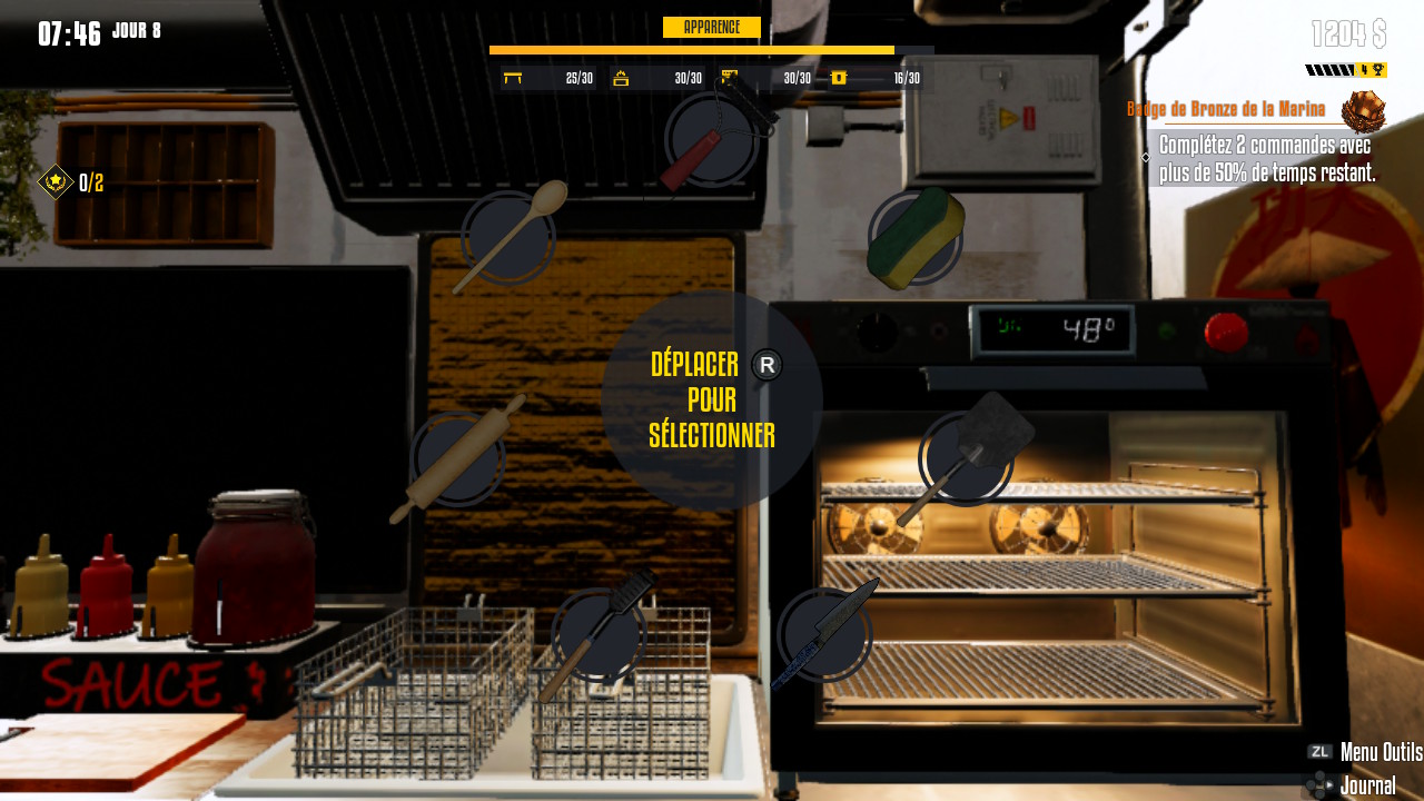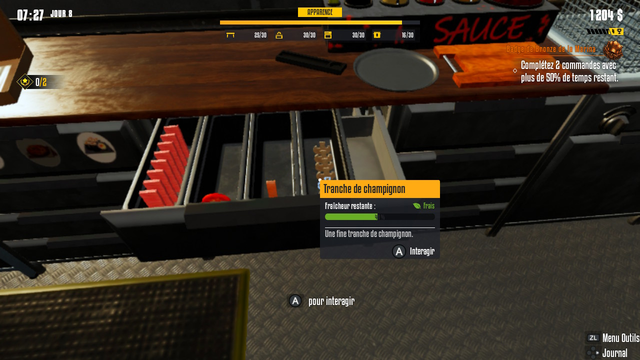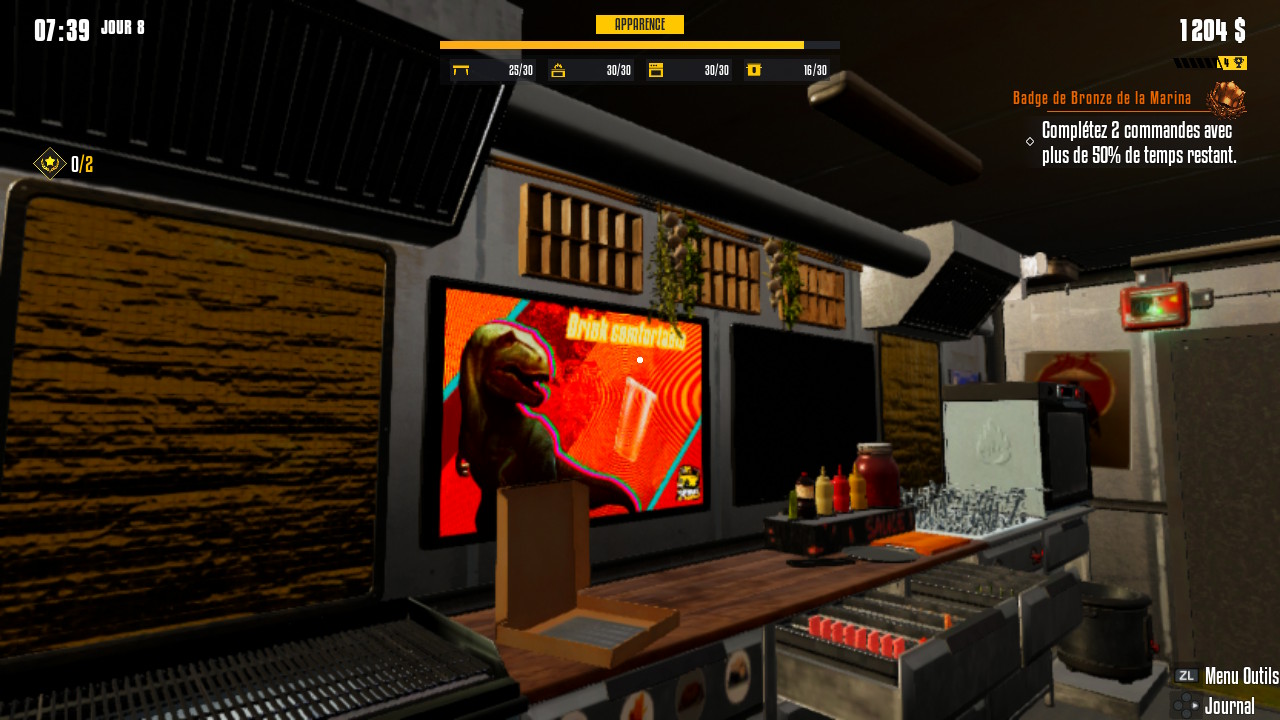Après ce long tutoriel de quelques heures saupoudrées d’une histoire qui se tient sur un fil (un père mort, un rival venue de nulle part qui brûle votre food-truck, des amis inattendus qui vous exploitent), nous voilà dans le grand bain.