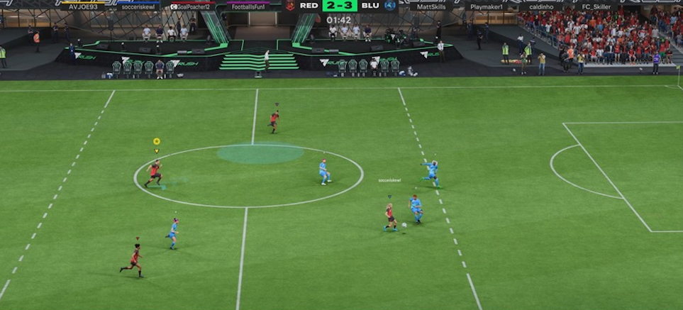 Les footballeurs sur le terrain seront contrôlés par les utilisateurs. Si un joueur est déconnecté, l’IA contrôlera le dit footballeur.