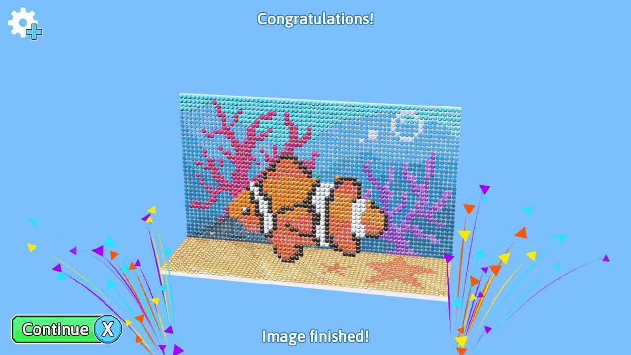 Le titre parvient à faire preuve d’originalité en proposant des toiles en relief. Il s’agit ainsi de progresser strate par strate, jusqu’à former le dessin final, similaire aux cartes d’anniversaire qui se déploient à leurs ouvertures.