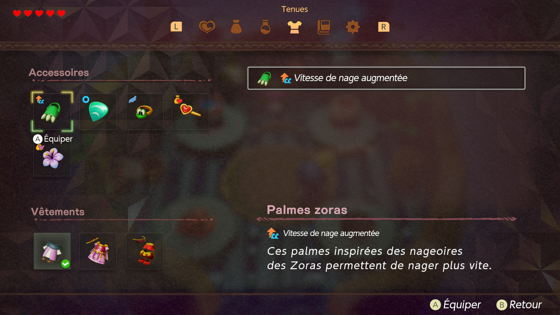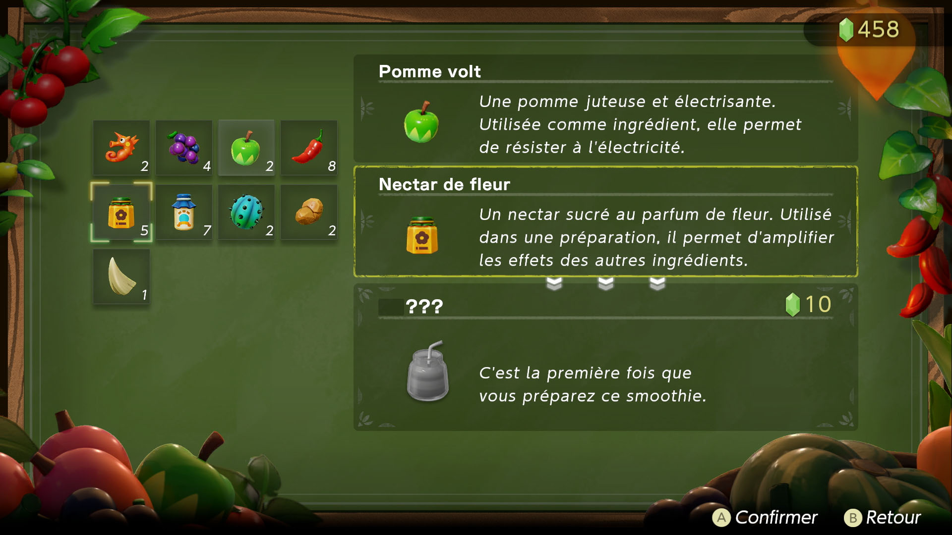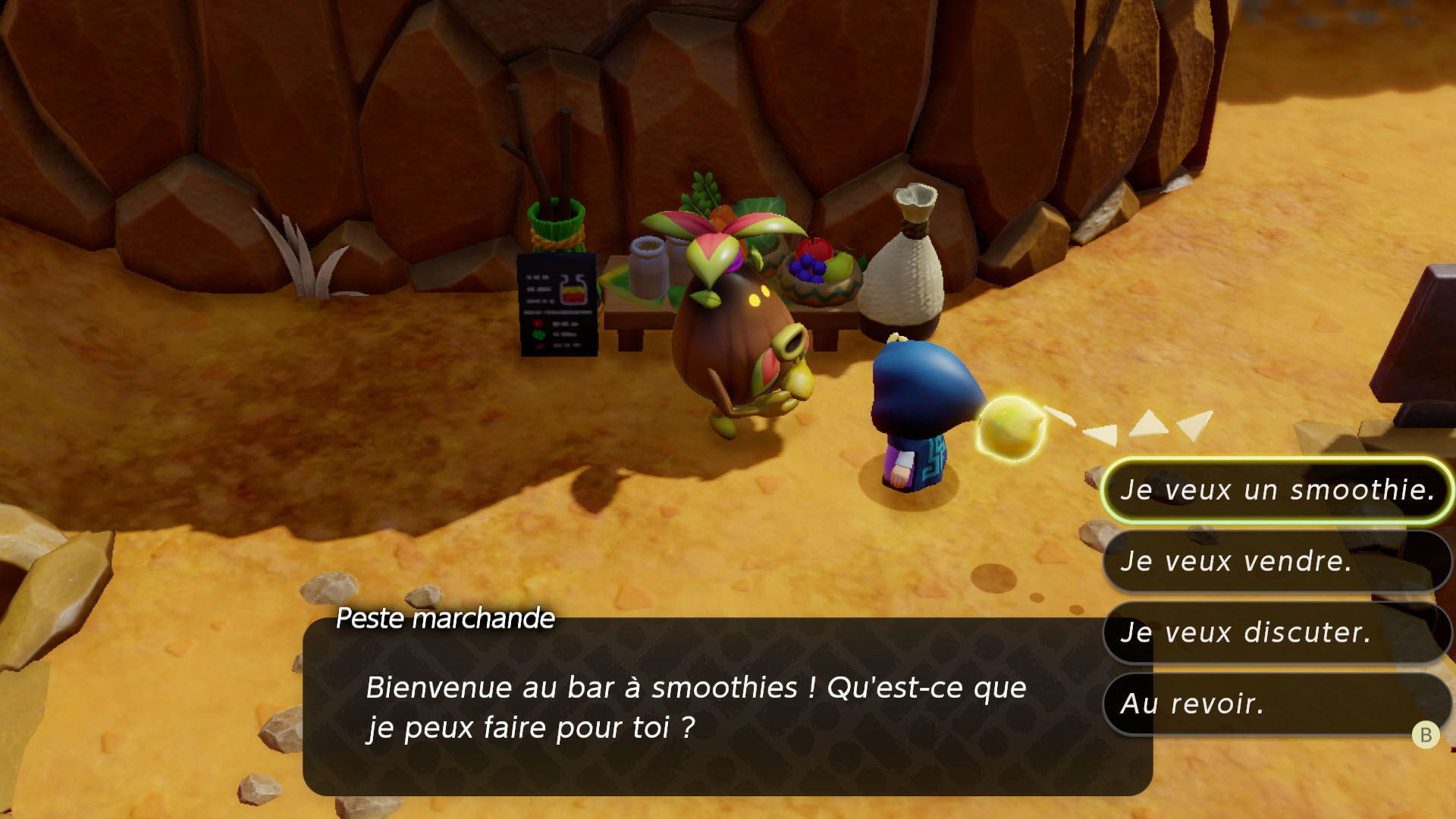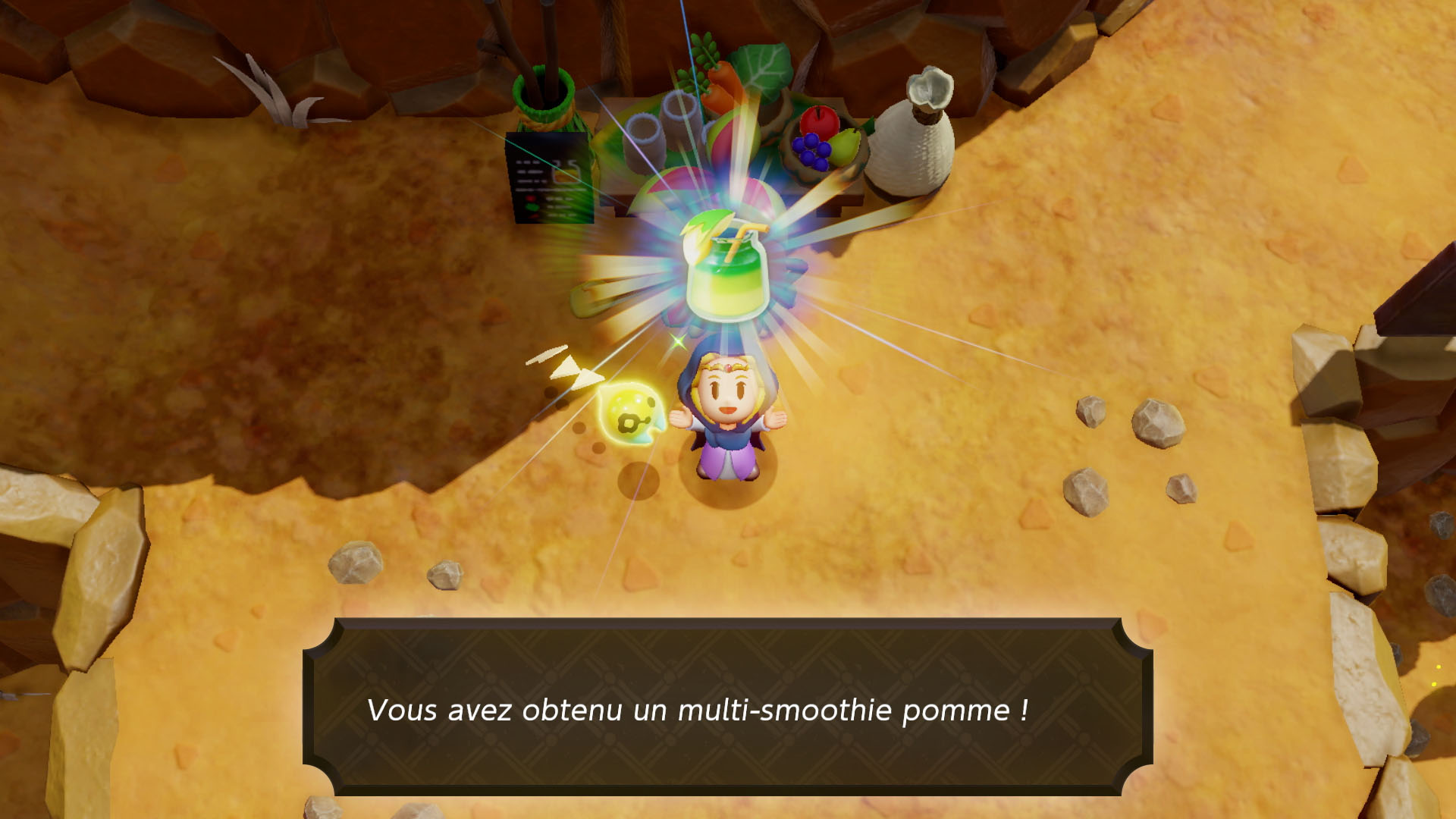 Dans tout Hyrule, les joueurs pourront trouver des bars à smoothies tenus par des Pestes marchandes, et dans lesquels ils pourront mélanger les ingrédients collectés pour obtenir de délicieuses boissons. En fonction des ingrédients utilisés, les smoothies produiront des effets différents, comme la restauration de la santé. Zelda pourra également s’équiper de tenues et d’accessoires pour améliorer certaines capacités ou simplement changer de style.
