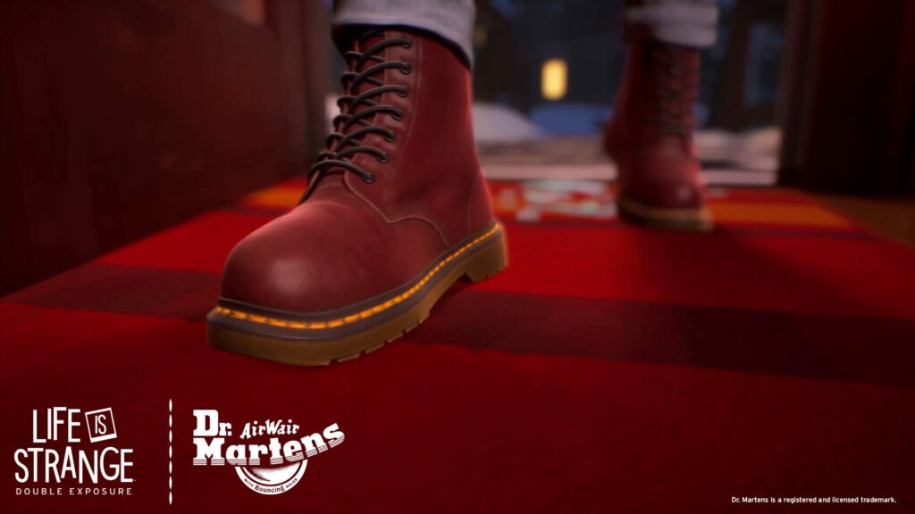 Dans LIFE IS STRANGE: DOUBLE EXPOSURE, Max Caulfield porte des bottines Dr. Martens emblématiques, les 1460 en cuir lisse couleur rouge cerise, alors qu’elle cherche à résoudre le mystère de la tragédie au cœur de l’histoire du jeu. Les bottlines Dr. Martens sont disponibles dans le monde réel ici : https://www.drmartens.com/fr/fr/boots.Qu’elle prenne des photos de bâtiments abandonnés ou qu’elle explore le campus de Caledon en quête d’indices, Max choisit des bottines qui s’accordent parfaitement avec son style et sa personnalité. Elle portera des boots 1460 de différentes couleurs avec les packs de tenues supplémentaires, qui proposent diverses tenues élégantes, ainsi que des cosplays, dans les trois éditions du jeu.