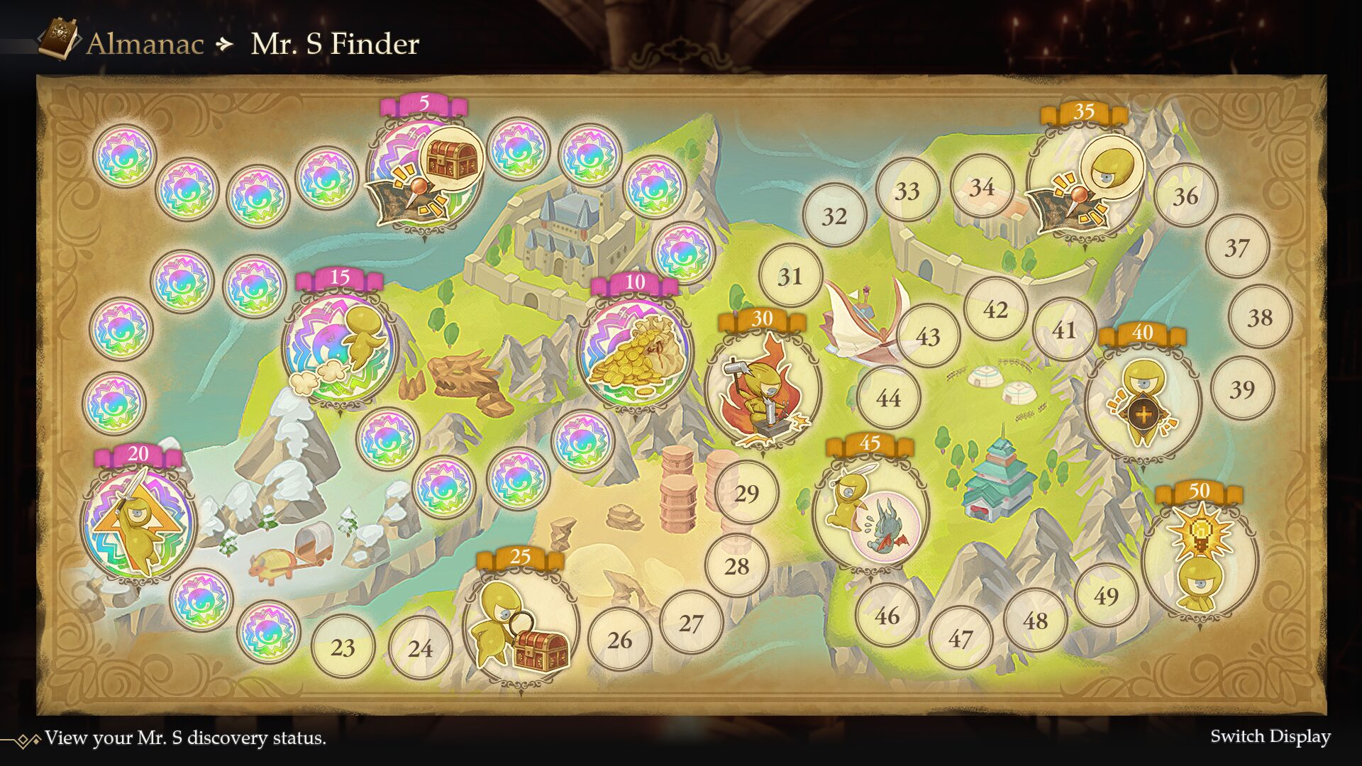 Chaque fois que Mr. S est trouvé, il récompense le joueur avec un autocollant. Collecter des autocollants débloque toutes sortes d’avantages, comme augmenter le montant des revenus gagnés après chaque victoire, diminuer le temps nécessaire pour construire de nouvelles installations, ou révéler l’emplacement des coffres au trésor non découverts.