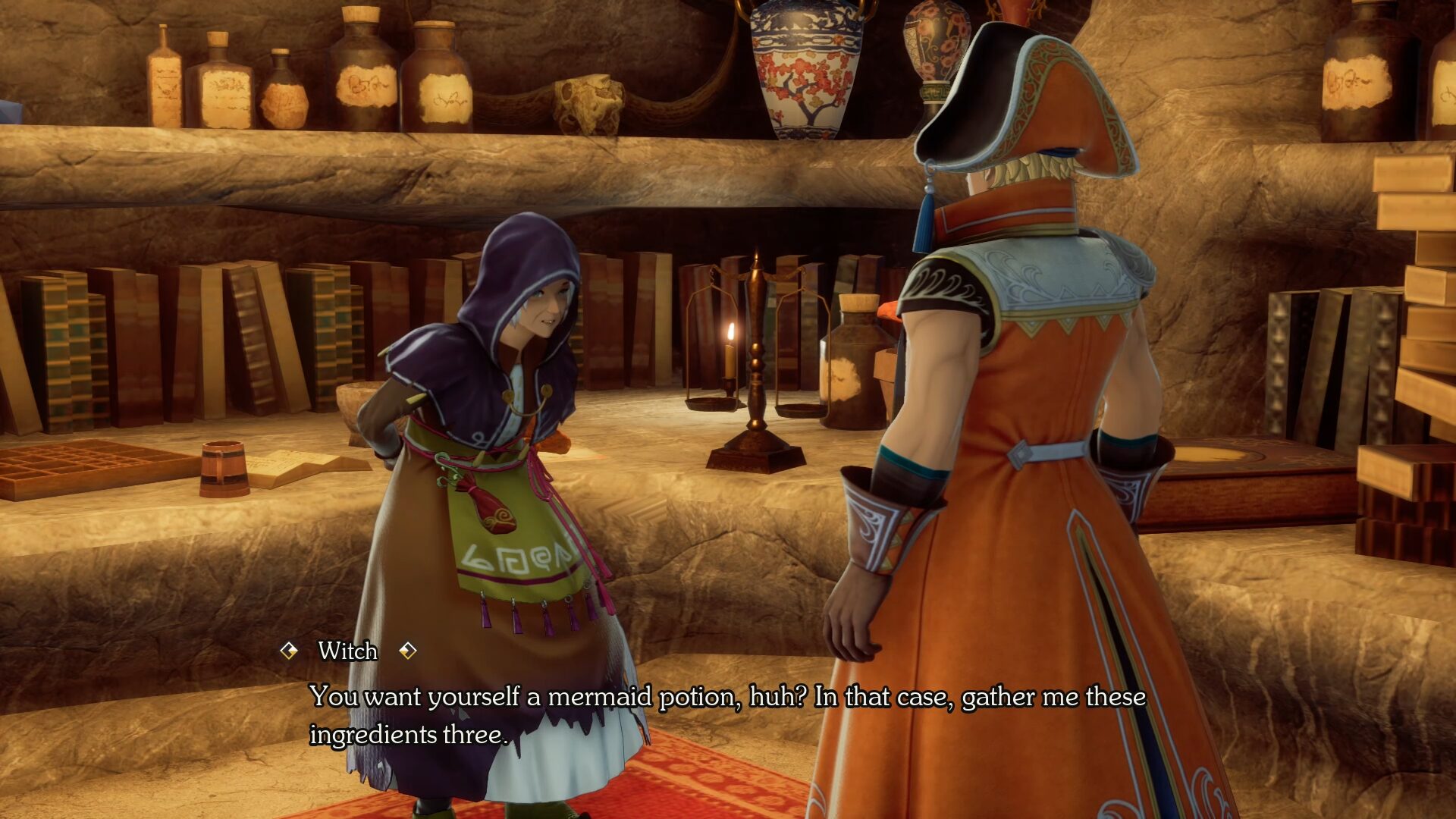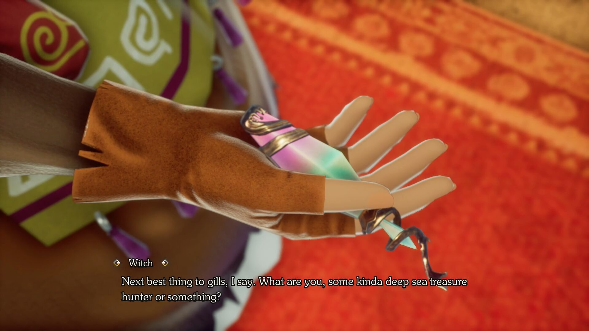 Chercher de l’aide auprès de la sorcière : Si le joueur recherche la sorcière, il devra entreprendre une quête qui nécessite l’aide de diverses races puis remettre les matériaux nécessaires. Une fois cela fait, la sorcière récompensera le joueur avec la potion. Utiliser la potion de sirène permet au joueur d’atteindre l’épave coulée. Garon, le pirate fantomatique qui a invoqué la tempête, attend la suite dans ses profondeurs.