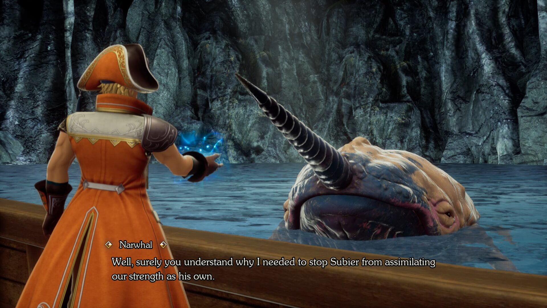 Chercher de l’aide auprès des hommes-poissons : Si le joueur fait la paix avec Narwhal après qu’elle ait détruit un des ponts de l’Empire, un messager des sirènes donnera au joueur la potion de sirène. Utiliser la potion de sirène permet au joueur d’atteindre l’épave coulée. Garon, le pirate fantomatique qui a invoqué la tempête, attend la suite dans ses profondeurs.