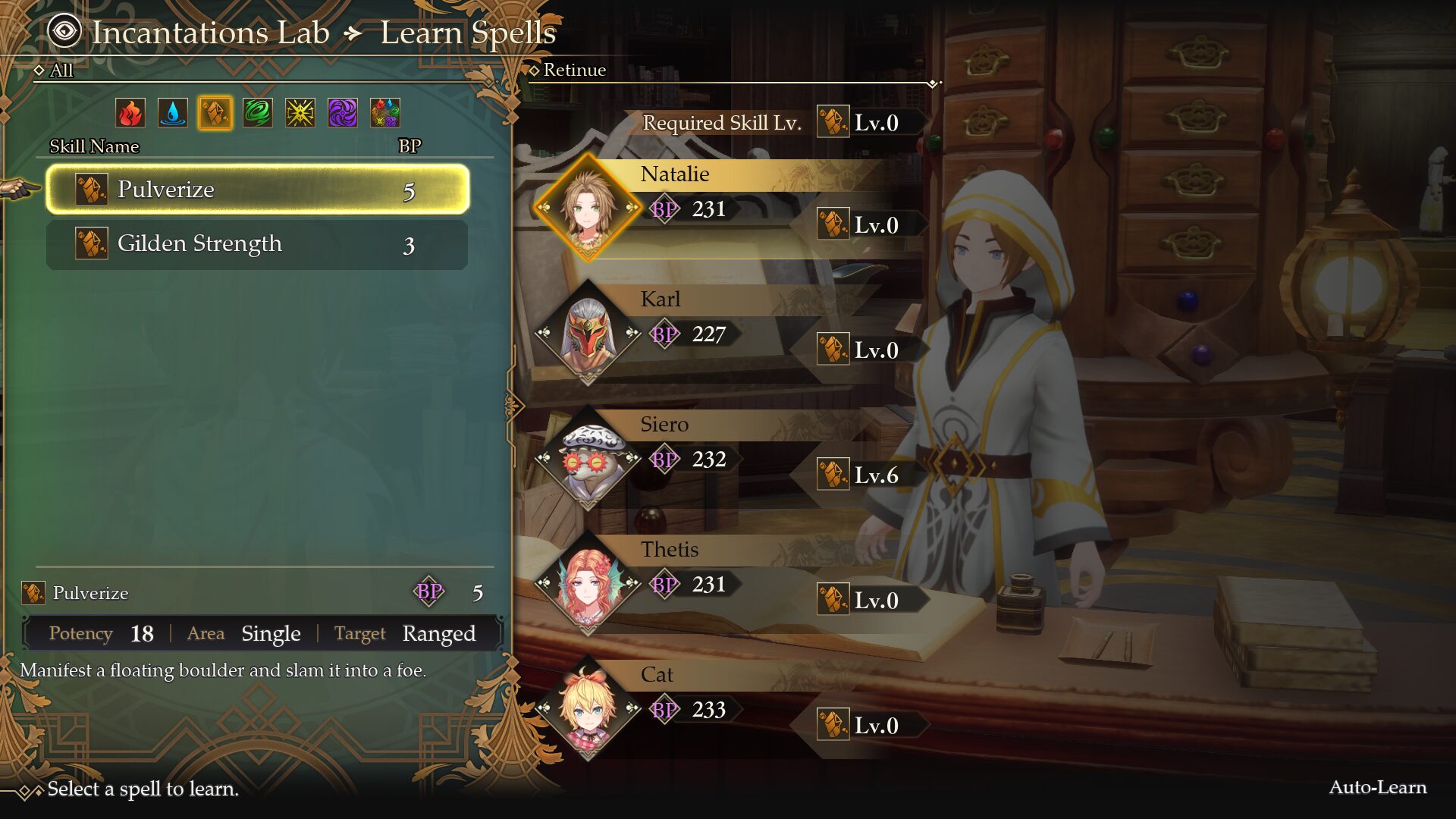 Les sorts appris via le système de scintillement seront enregistrés dans le Laboratoire des Incantations, où ils peuvent ensuite être enseignés à d’autres personnages ayant un niveau suffisamment élevé dans l’école de sorts appropriée (élément).