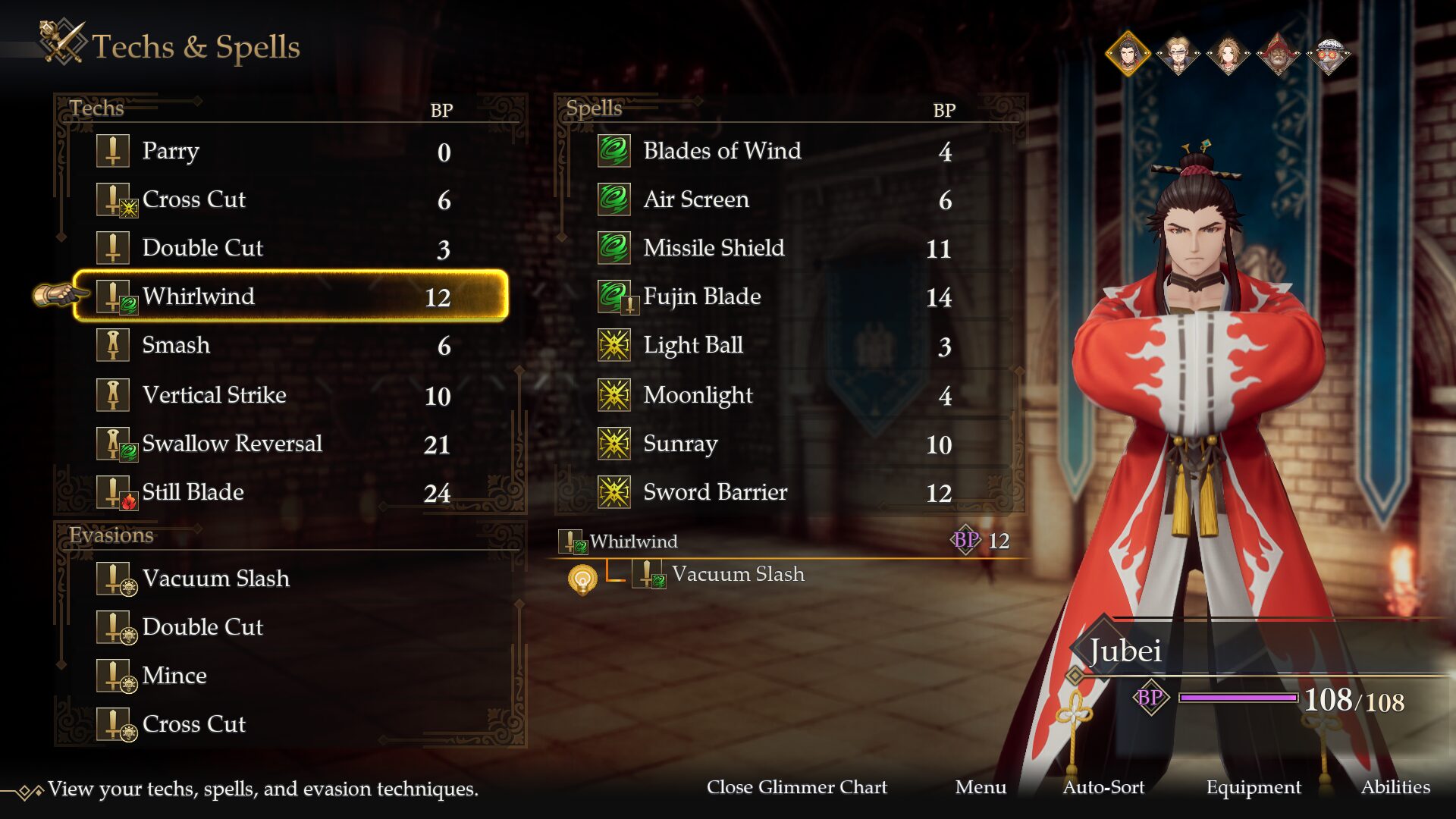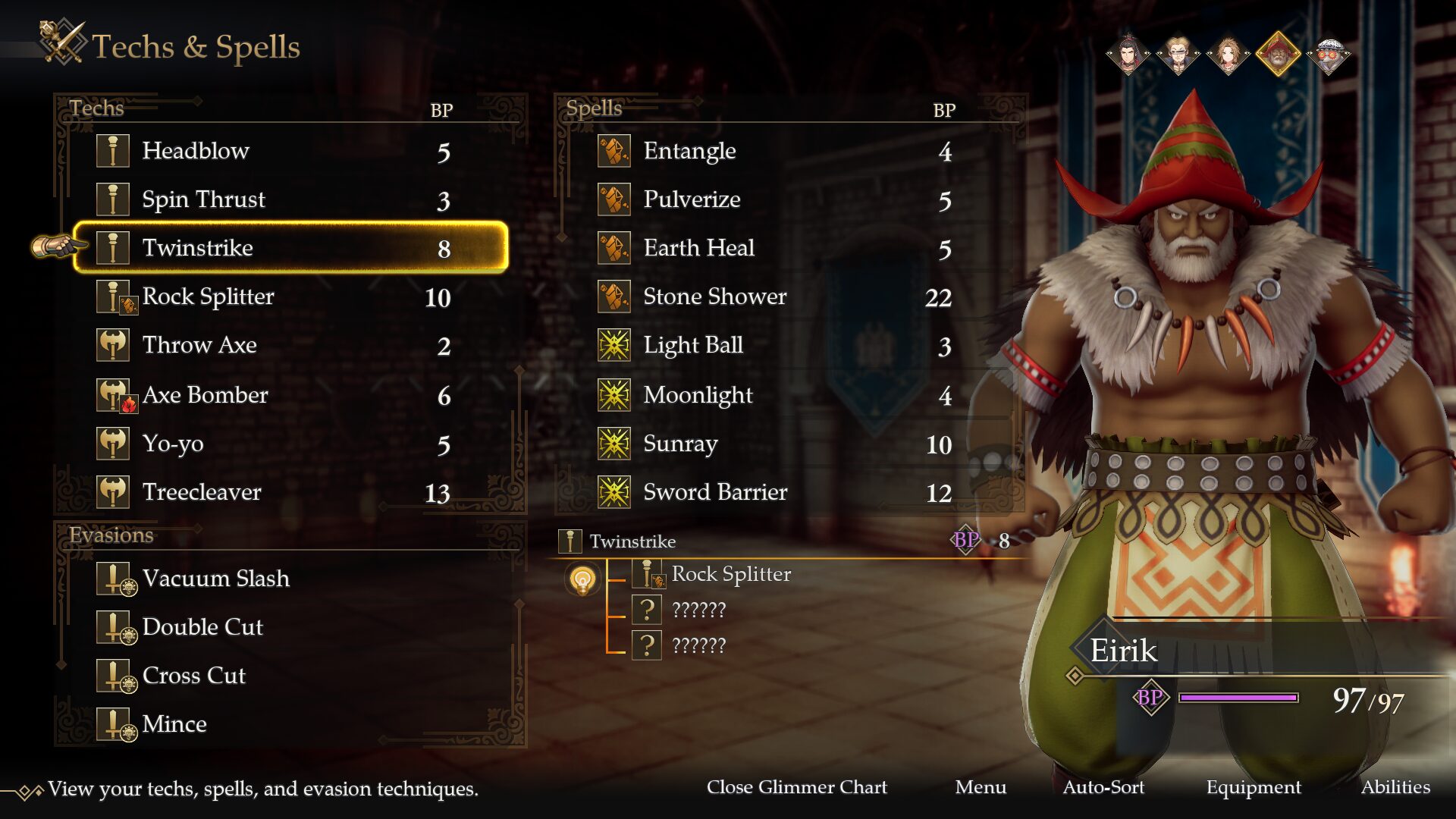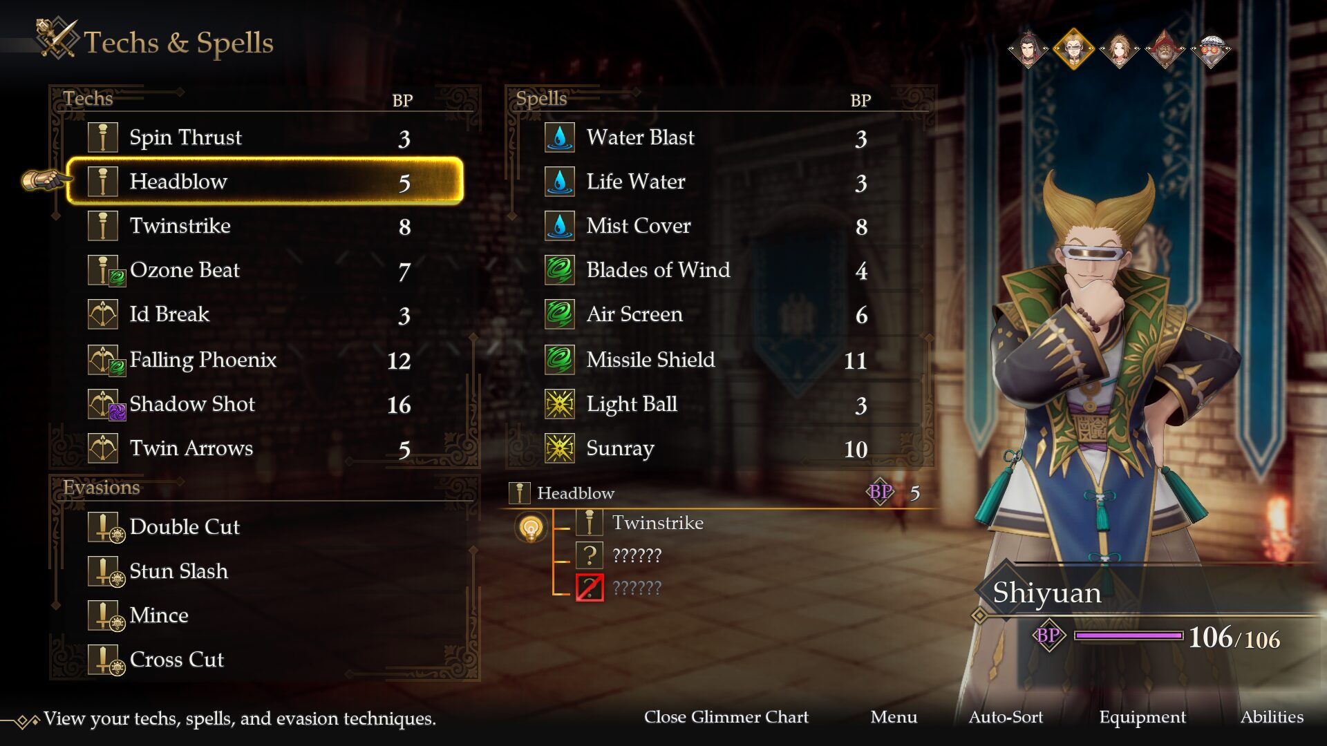 Les joueurs peuvent vérifier quelles classes de personnages peuvent apprendre quelles techniques via le tableau de scintillement. Différentes classes de personnages ont différentes affinités pour l’apprentissage des techniques. Les techniques qui n’ont pas encore été apprises apparaissent sous forme de points d’interrogation, tandis que les techniques qui ne peuvent pas être apprises en raison de l’incapacité de la classe de personnage à les utiliser sont marquées d’une icône barrée d’une ligne diagonale.